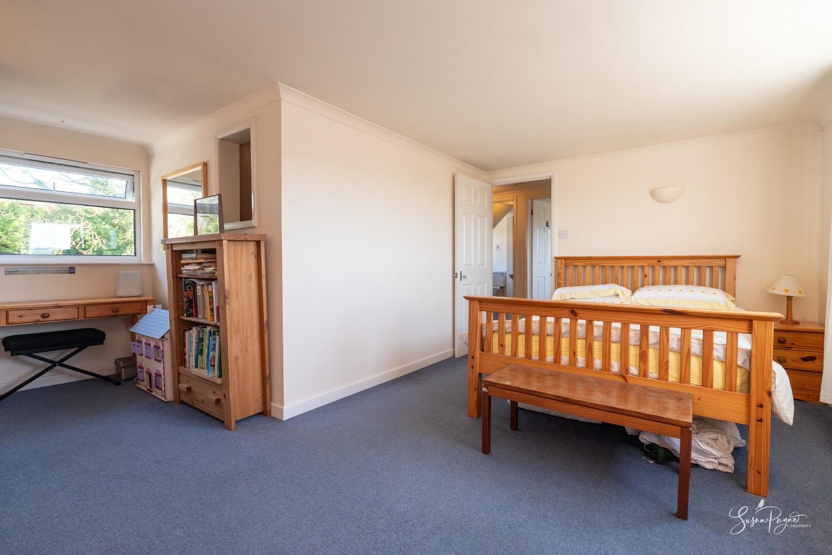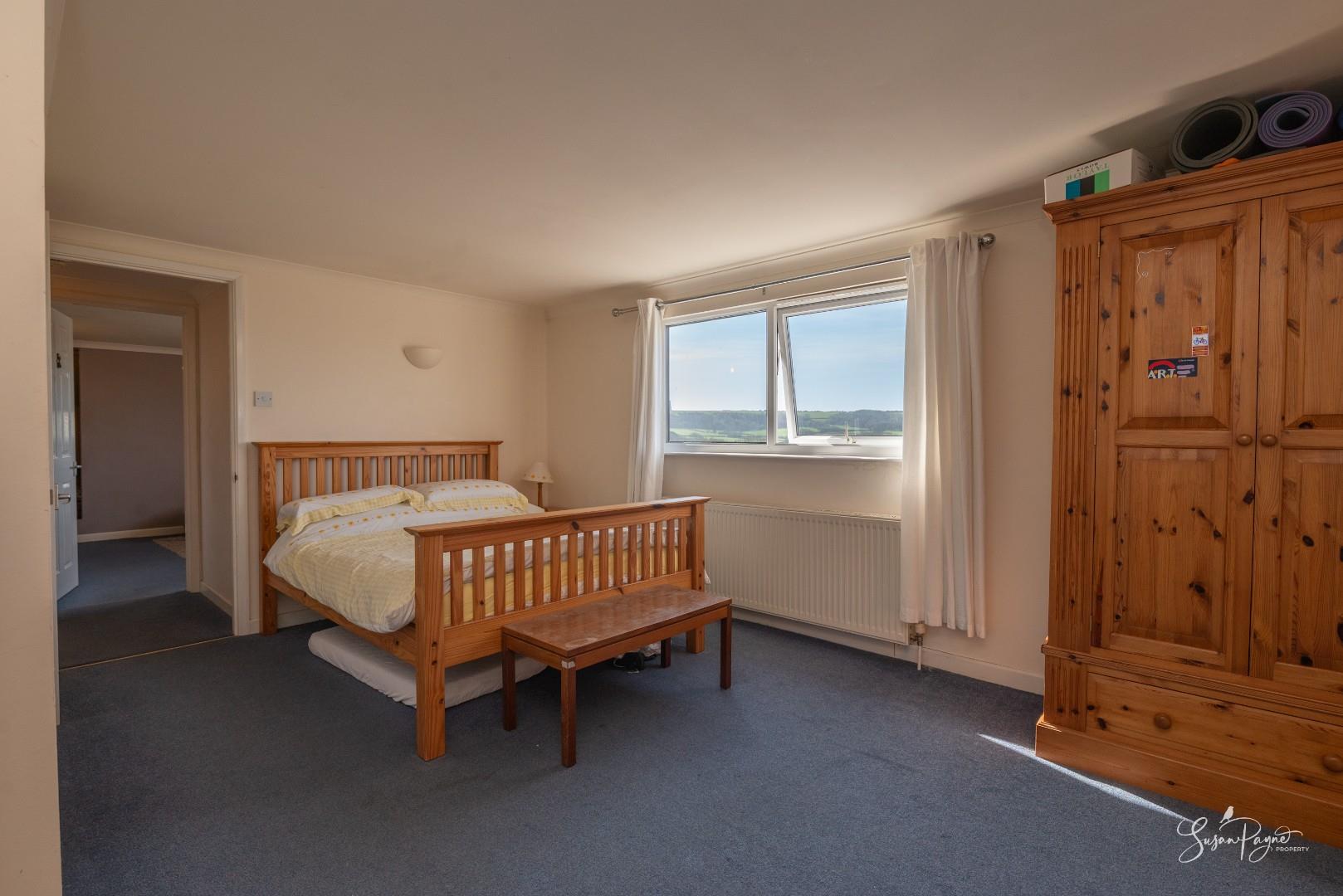 Generously proportioned and flooded with natural light from the windows to the front and rear, this double bedroom offers an opportunity for development with potential for a large en-suite or walk-in wardrobe. The elevated position from the first floor offers even more expansive views from Culver Downs across the island.