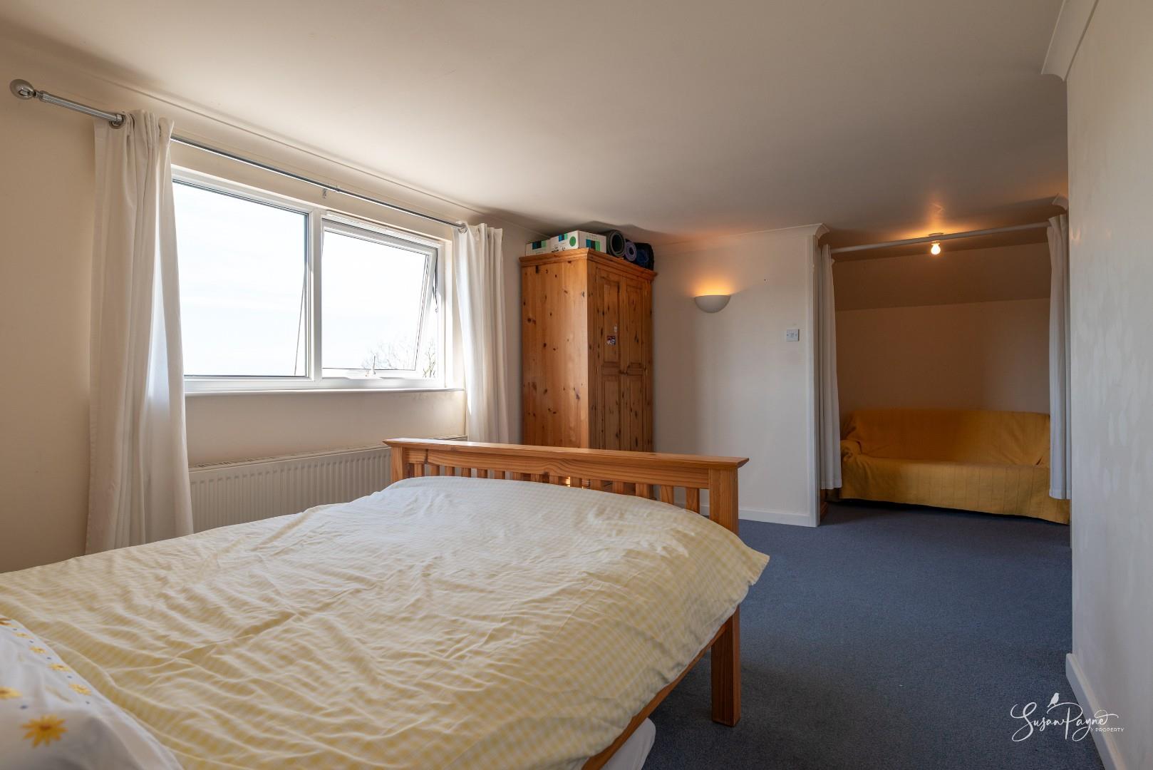 Currently utilised as a living area, this double bedroom features an additional room, currently used as a bedroom, which could be utilised as an en-suite or walk in wardrobe. The views to the rear aspect are uninterrupted and the space offers the best seat in the house for watching the sun go down.