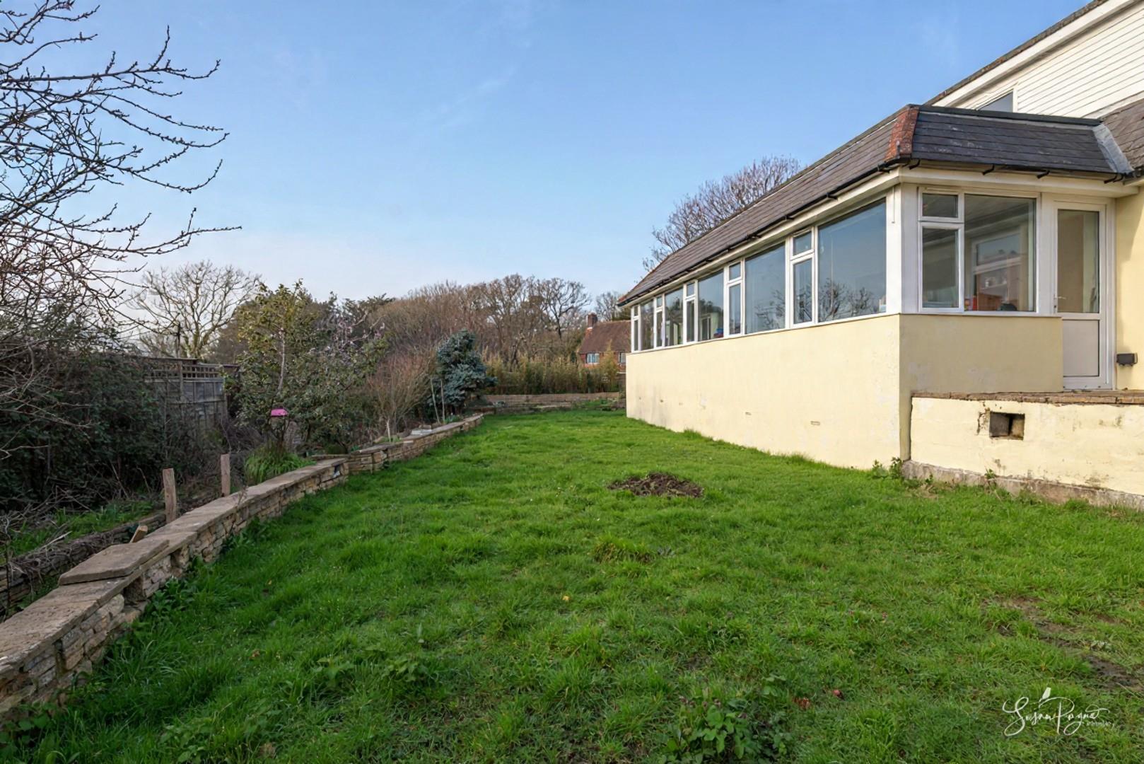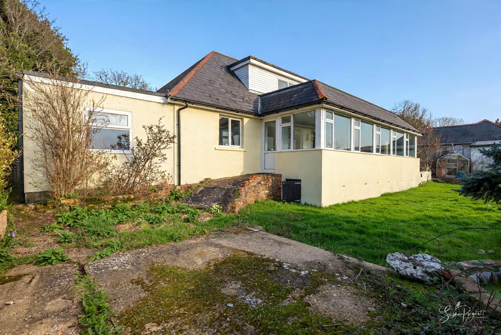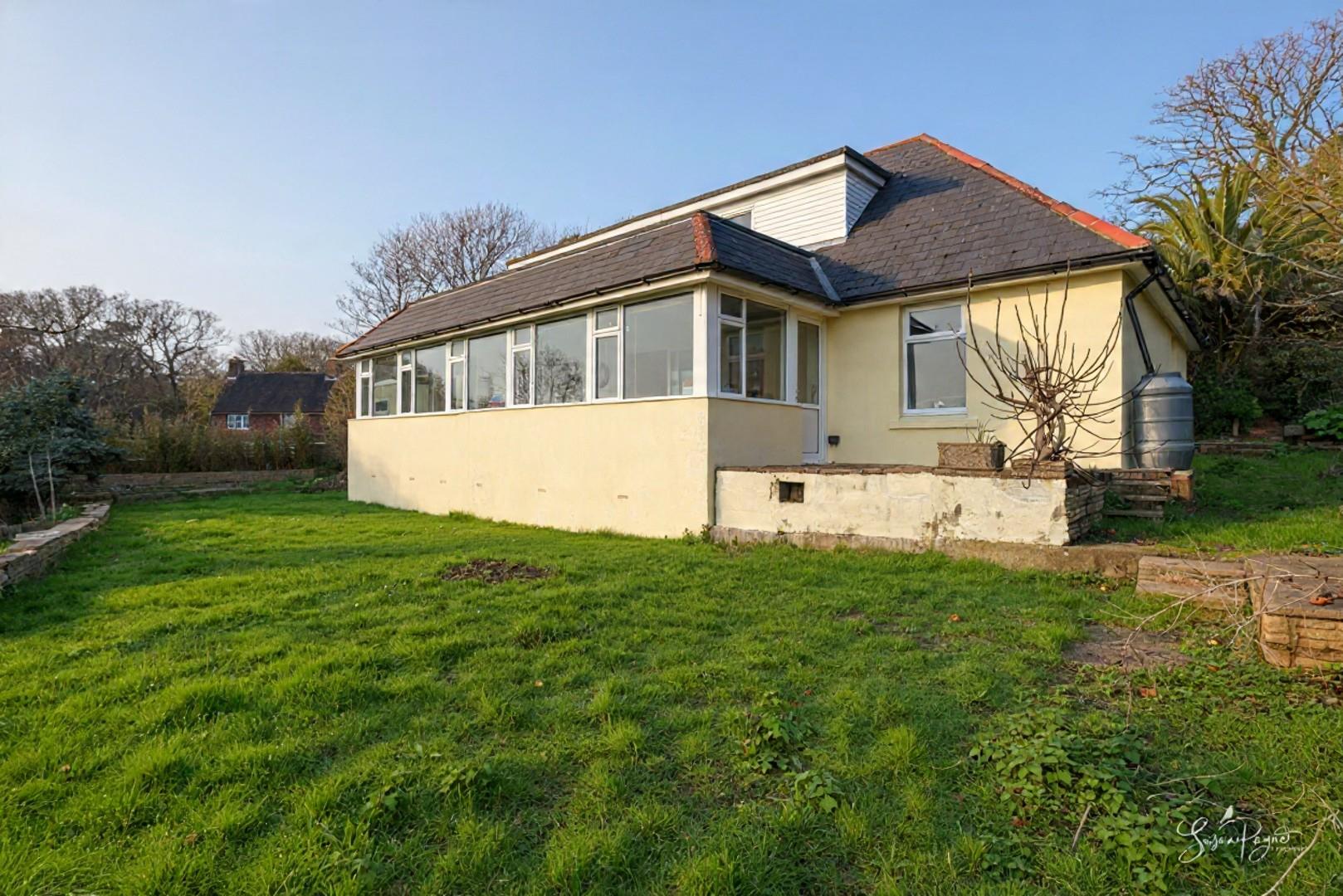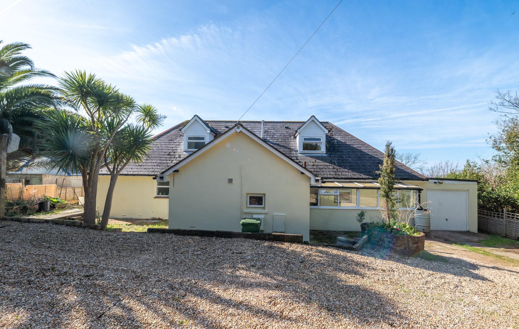 Boasting incredible views to the West, this substantial six-bedroom chalet bungalow offers spacious accommodation with potential for the new owners to personalise, and benefits from wrap-around gardens, plenty of driveway parking, and a garage.