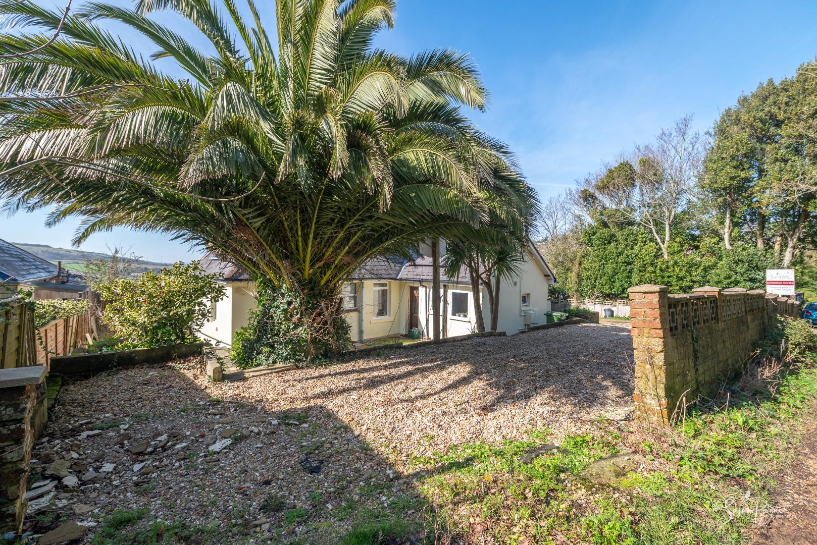 Approached via a well-maintained unmade lane from Hillway Road, the striking chalet bungalow offers a generous driveway providing extensive parking and access to the garage. The property enjoys an elevated position that immediately highlights the far-reaching countryside views beyond.