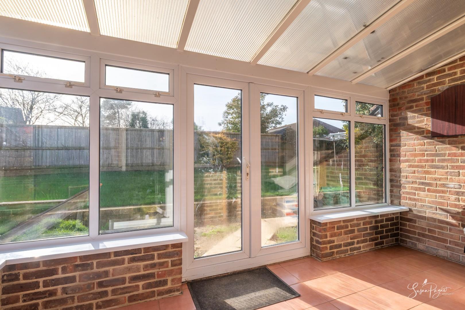 Overlooking the garden, the conservatory provides a peaceful retreat bathed in natural light. French doors open directly onto the patio, enhancing the sense of indoor-outdoor living during the warmer months.