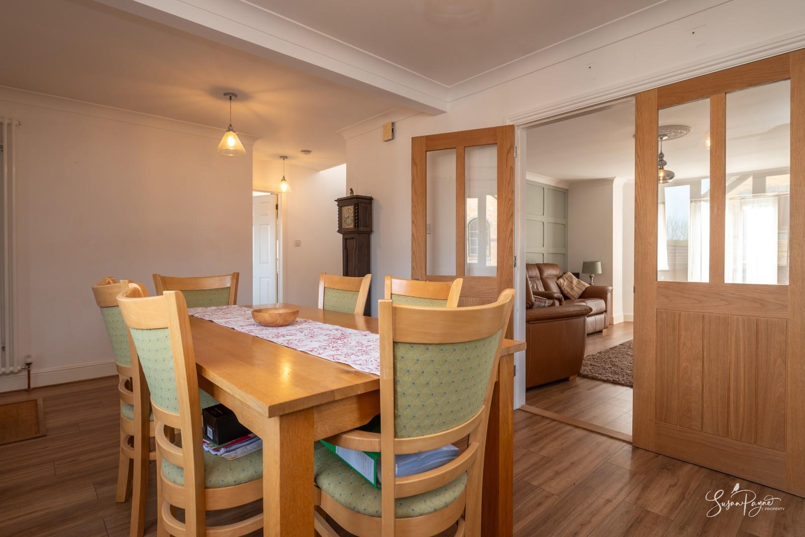 Positioned to the rear, the dining room provides a dedicated space for entertaining and family gatherings. Its layout comfortably accommodates a full dining suite and offers direct access to the garden.