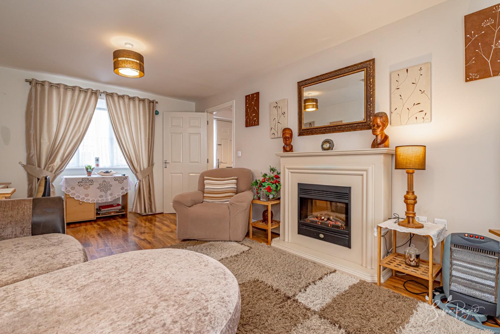 Featuring a box bay window to the front aspect, this versatile room continues with the white wall decor from the entrance hall which is complemented by a cosy, neutral carpet. A pendant light fitting and a radiator are also located here.