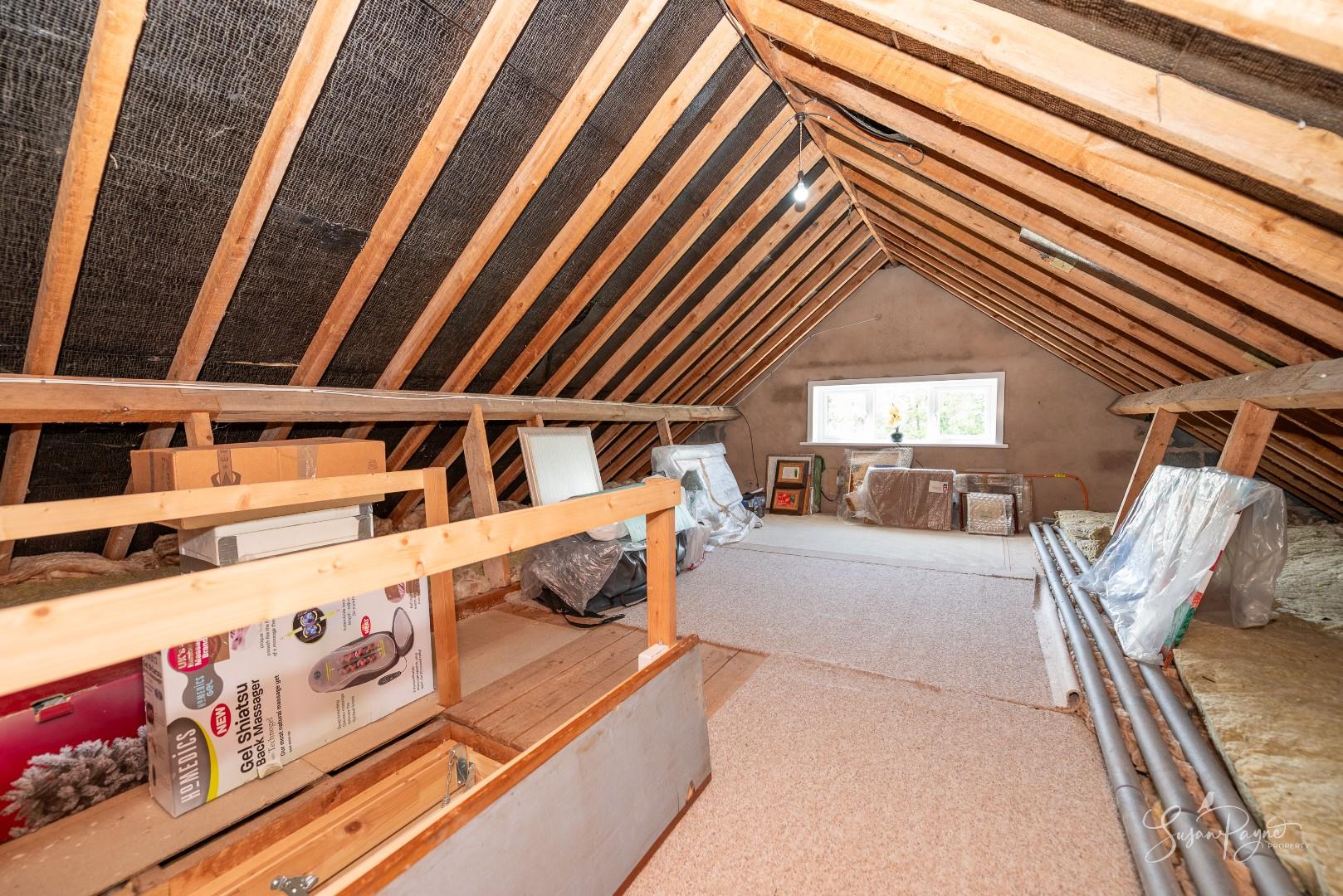 The large loft space is easily accessible via pull-down steps, and provides excellent additional storage. The space has good head-height, is boarded and also benefits from a window to the side aspect. Subject to the necessary consents, it may offer potential for further adaptation.