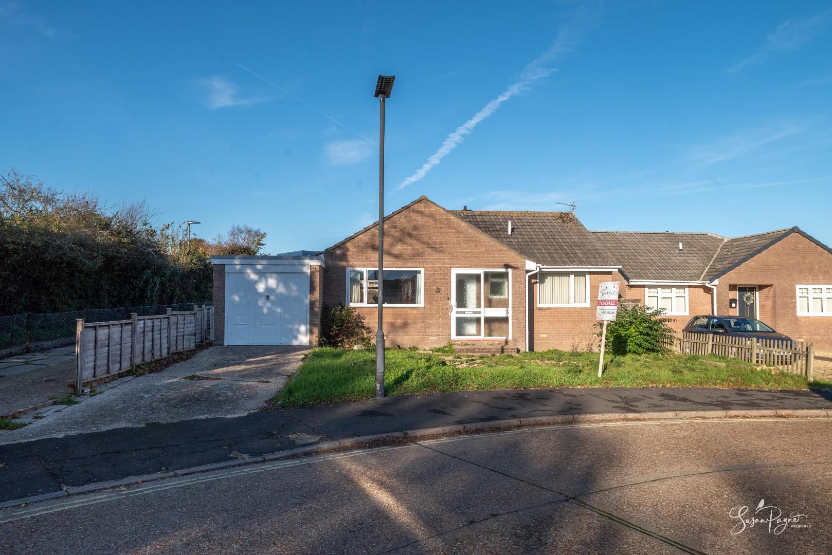 Approaching the bungalow from popular Purdy Road, a drive leads up to the garage, from which a path leads you to an internal porch which has a tiled floor. This bright area, perfect for storing shoes and coats, has dual aspect, long windows with decorated, obscure glass and a sliding glazed door. The UPVC front door to the property has an ornate glass panel with a window to the side.