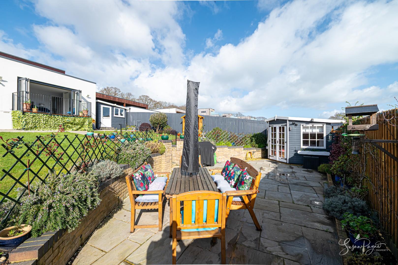 The current owners have completely transformed the outside space to create a beautifully landscaped garden arranged across several levels. A generous stone terrace wraps around the outside of the house and provides multiple spaces ideal for entertaining and outdoor dining, while steps lead to a lawned garden bordered with characterful mature planting. At the far end of the garden sits a delightful summerhouse, creating a charming retreat within the grounds. In addition, a substantial garden cabin offers exceptional versatility and could serve multiple purposes. A courtyard garden is located between the driveway and garden cabin, to create a further useful outside space. Backing onto open countryside and woodland, the garden enjoys a peaceful outlook and a wonderful sense of privacy.