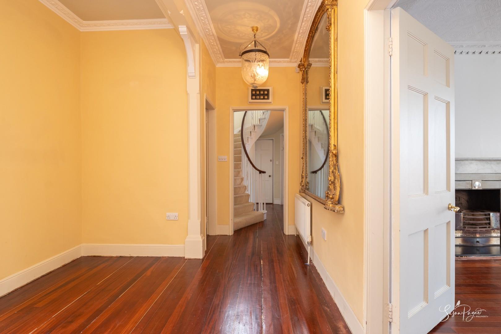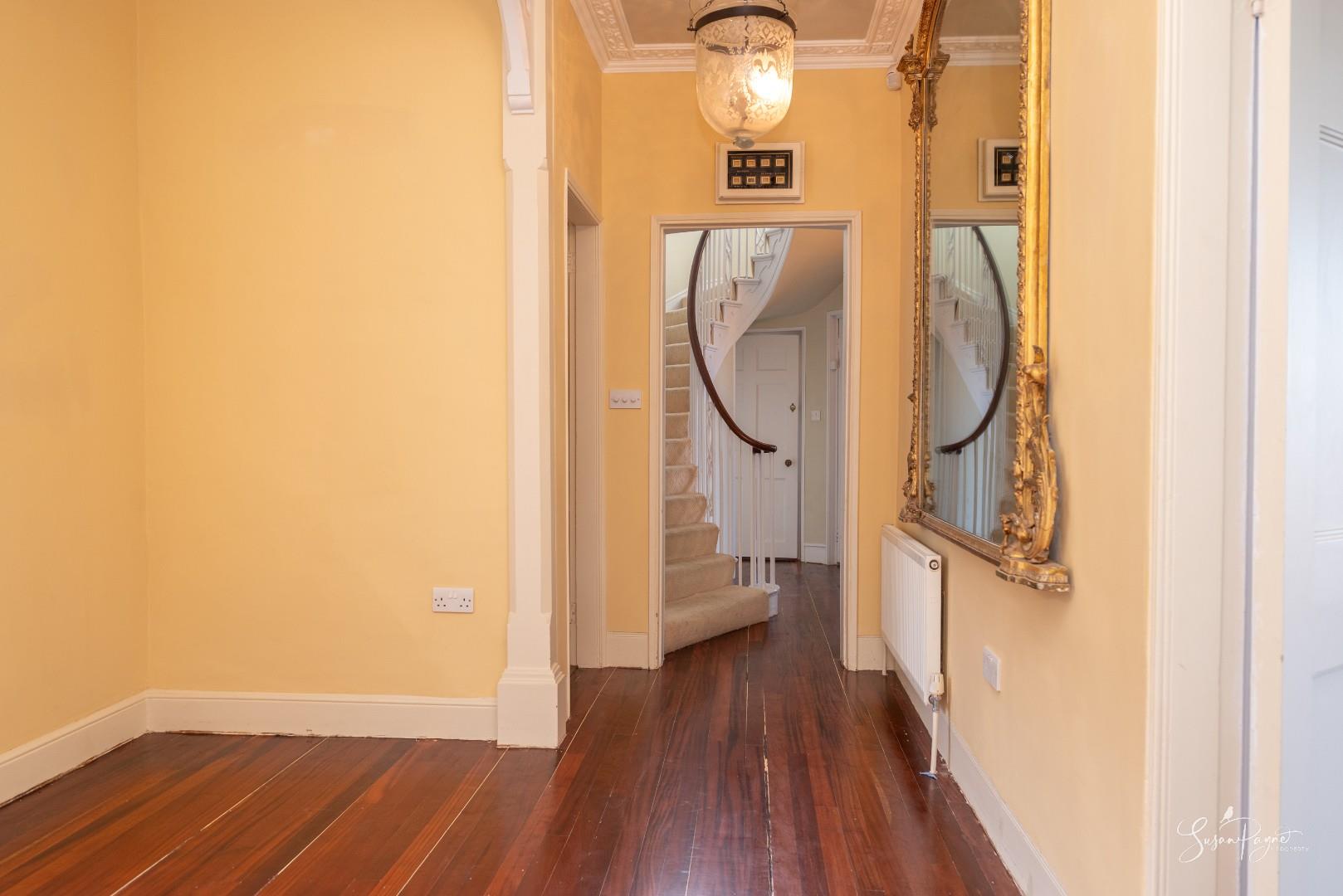 Filled with natural light and framed by decorative archways, the reception hall provides an elegant introduction to the home. Polished wooden floors and ornate cornicing reflect the craftsmanship of the period, creating a welcoming central space connecting the principal rooms.