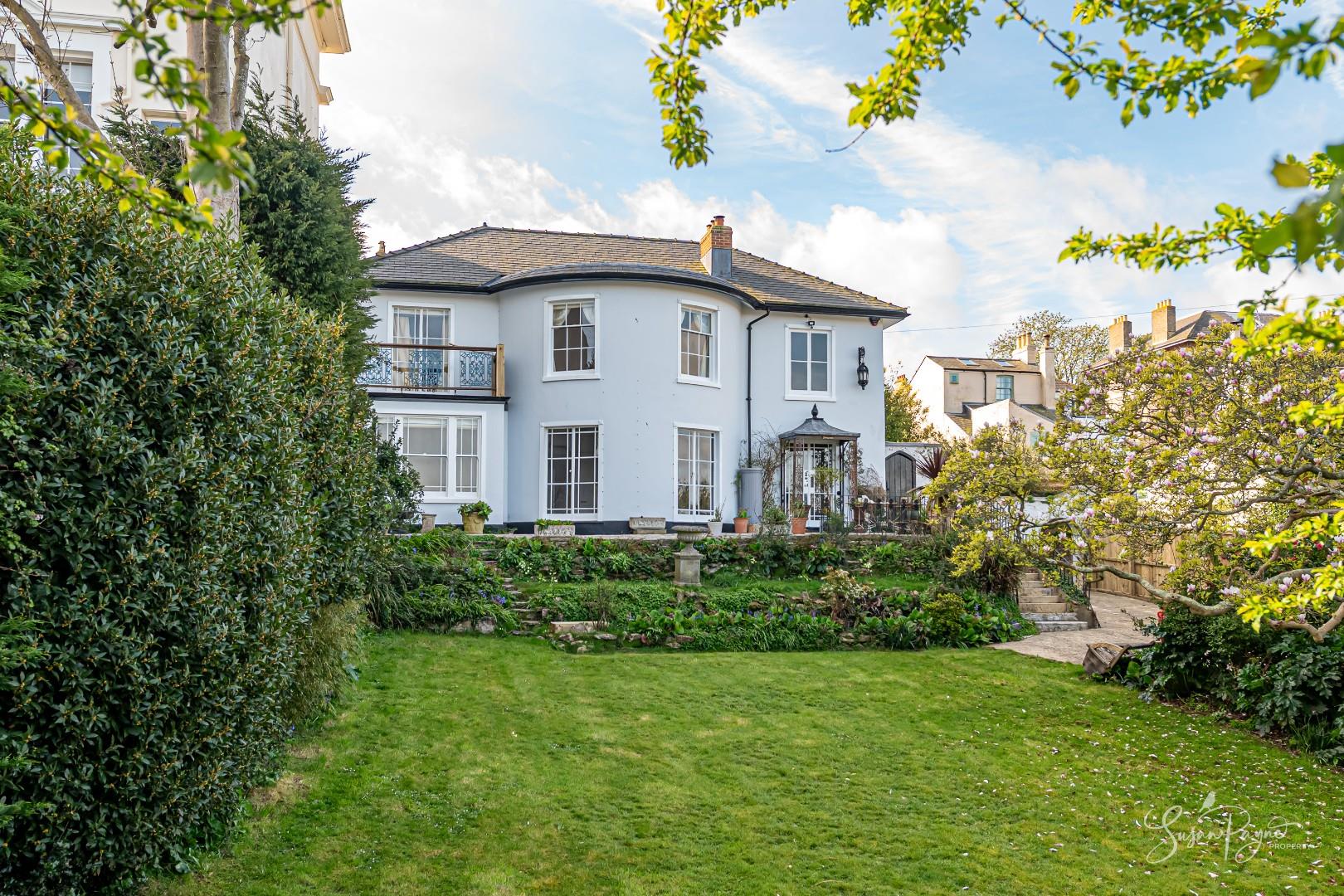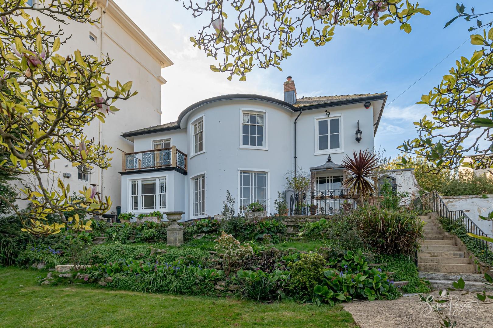 Approached through traditional brick pillars, the property reveals itself along a gently sweeping driveway framed by established planting and mature trees. The elegant façade of the Georgian villa immediately creates a striking first impression, reflecting the graceful proportions typical of early nineteenth-century coastal architecture.