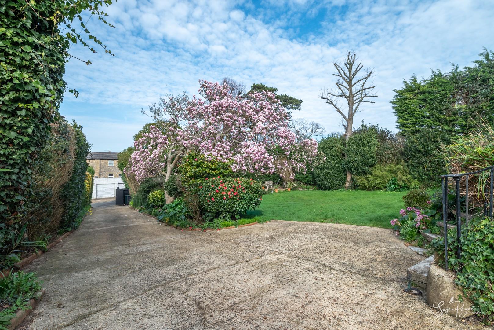 The gardens surrounding Pennyroyal provide a peaceful outdoor retreat designed for enjoyment. Expanses of lawn are bordered by established planting and mature trees to the front, creating privacy and seasonal interest throughout the year. A magnificent magnolia tree forms a striking focal point within the grounds. A raised terrace across the front of the property provides an inviting setting for outdoor dining while enjoying views towards the Solent and taking in the sunshine before setting in the West.