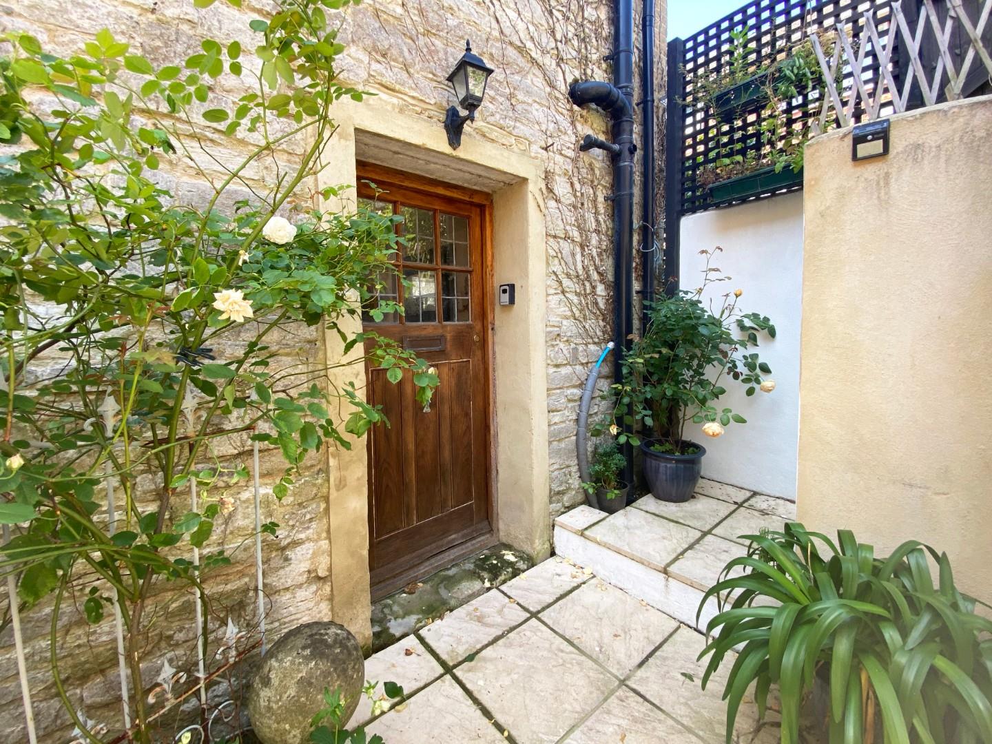Orchid House enjoys a quiet, tucked away position from Park Road and is accessed via private double gates. A smart gravel pathway leads to a full-height timber gate which provides private access to the outside space of this three-storey cottage. A set of paved steps to the right leads to a charming timber front door with glazed panels which is set within original stonework and has a lantern-style lampshade on the wall above.