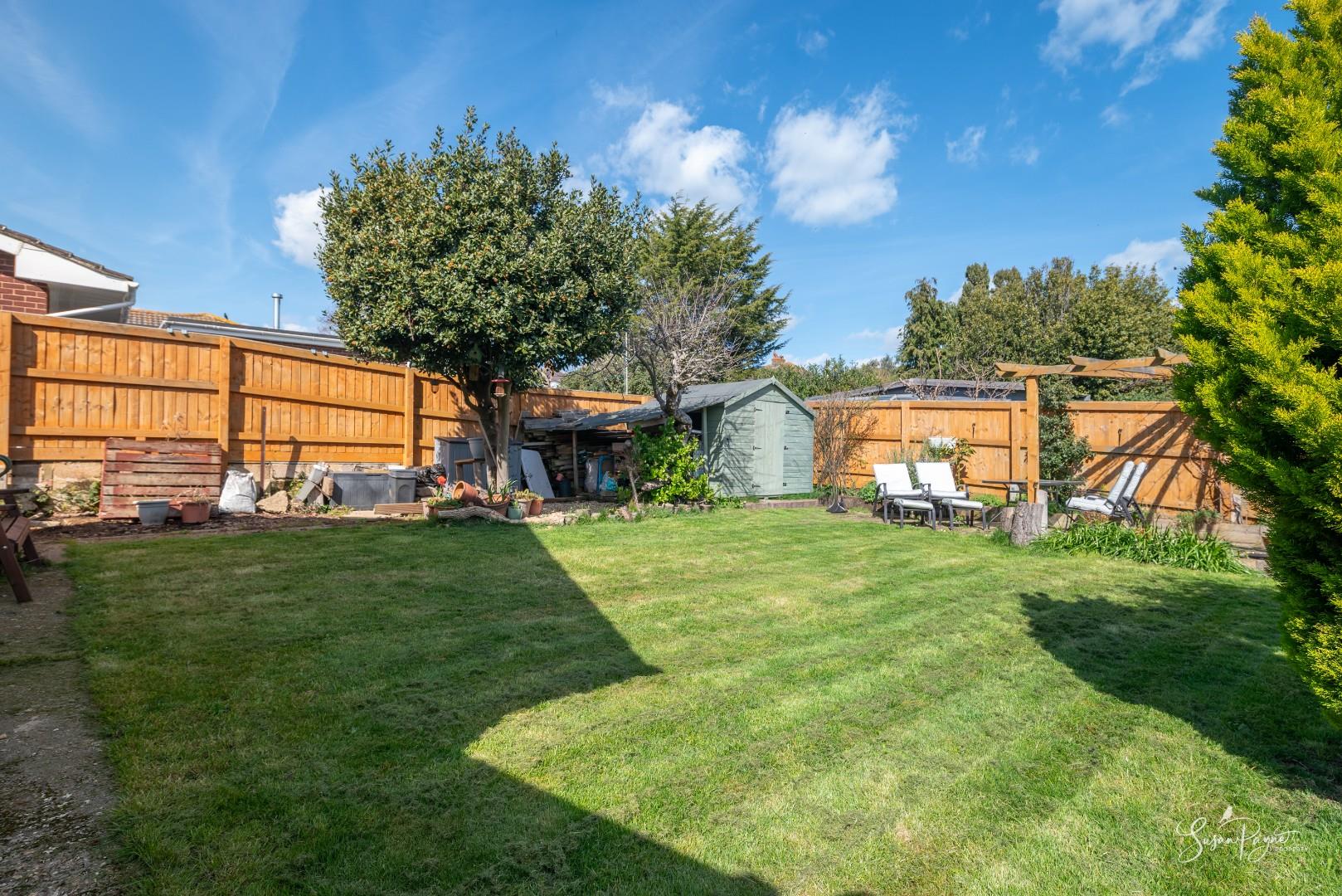 The rear garden has been landscaped and improved by the current owners, with newly installed fencing, paving, defined seating areas and a pergola, creating a low-maintenance and enjoyable outdoor space. The additional land purchased by the owners has significantly increased both the garden size and driveway space, making the property far more practical and versatile. Side access is generous on both sides of the property, with a large shed at the end of the driveway adding further useful storage.