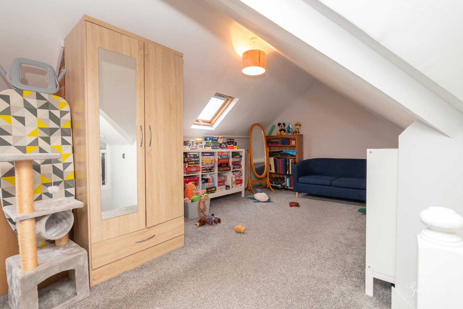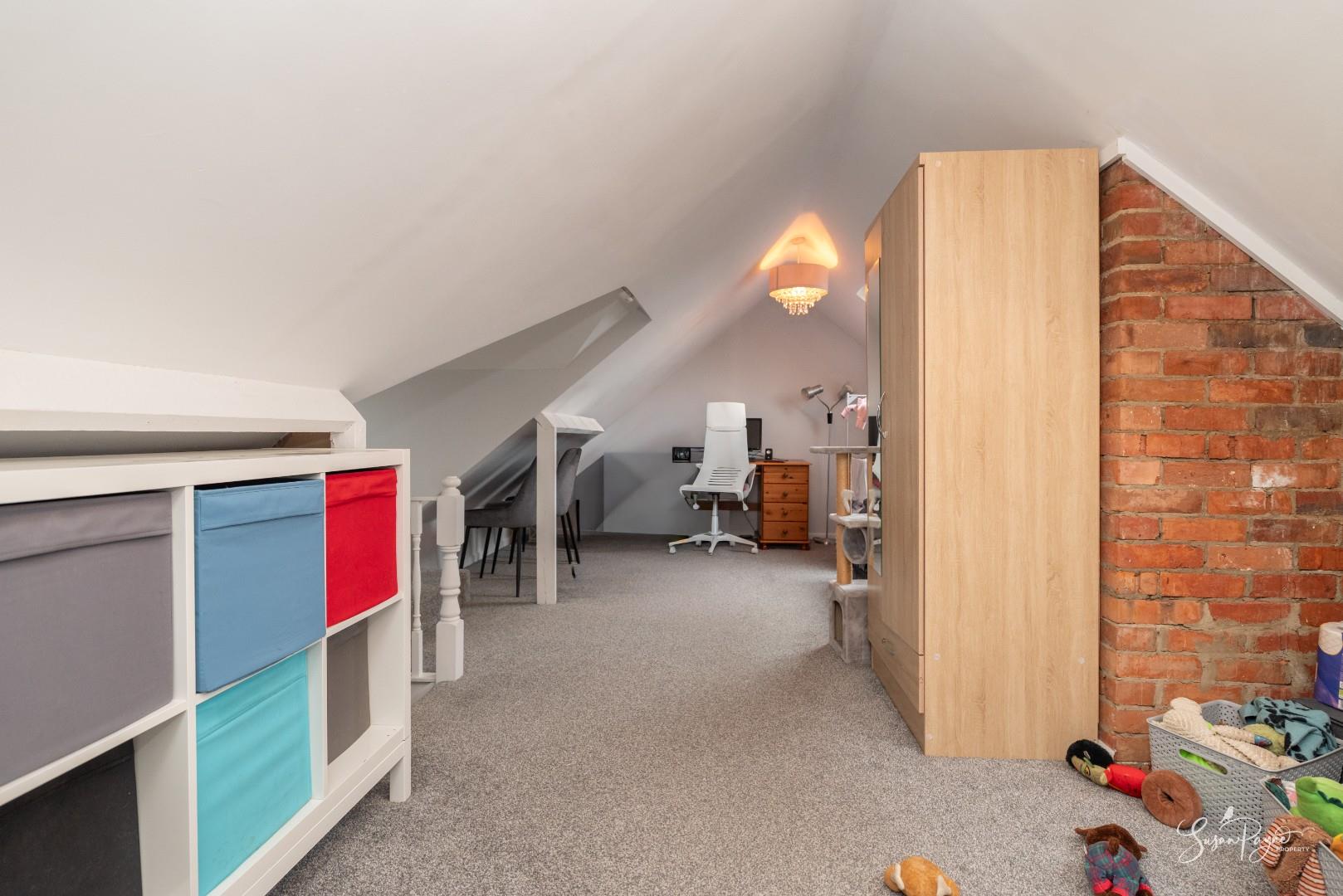 This superb and versatile loft room offers an excellent opportunity to utilise in many ways, including as a home office, games room or additional snug. The room features soft carpeting, neutral décor, Velux windows with the most wonderful far-reaching views and characterful exposed brickwork. The space could also be used as storage, which offers a practical access point via the stairwell.