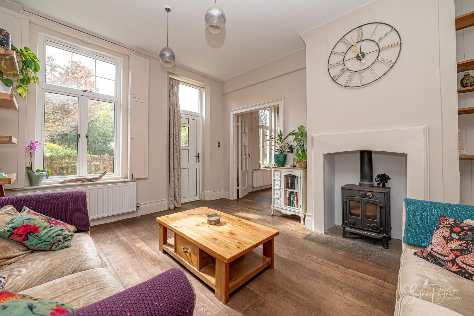 - Spacious sitting room with wood-burning stove