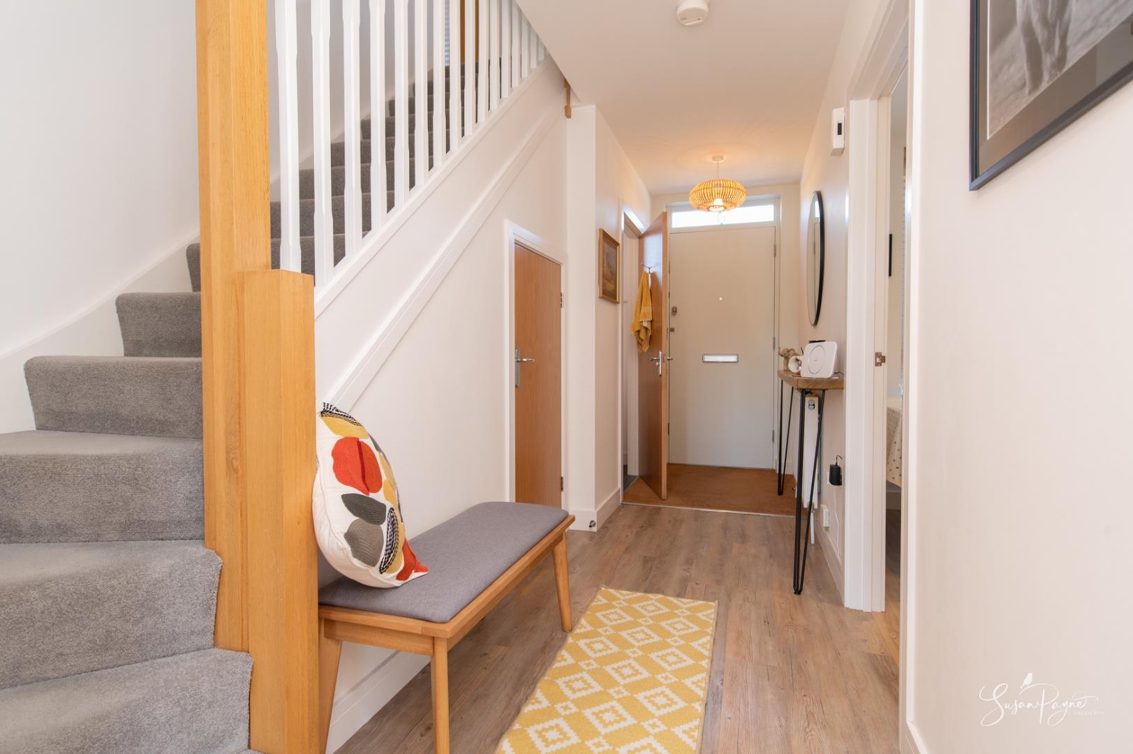 Presenting a wonderful entrance into the property, this naturally light space features a grey wood effect Karndean flooring which is complimented by the fresh white wall décor which can be found in other rooms in the house. There is a handy understairs cupboard.