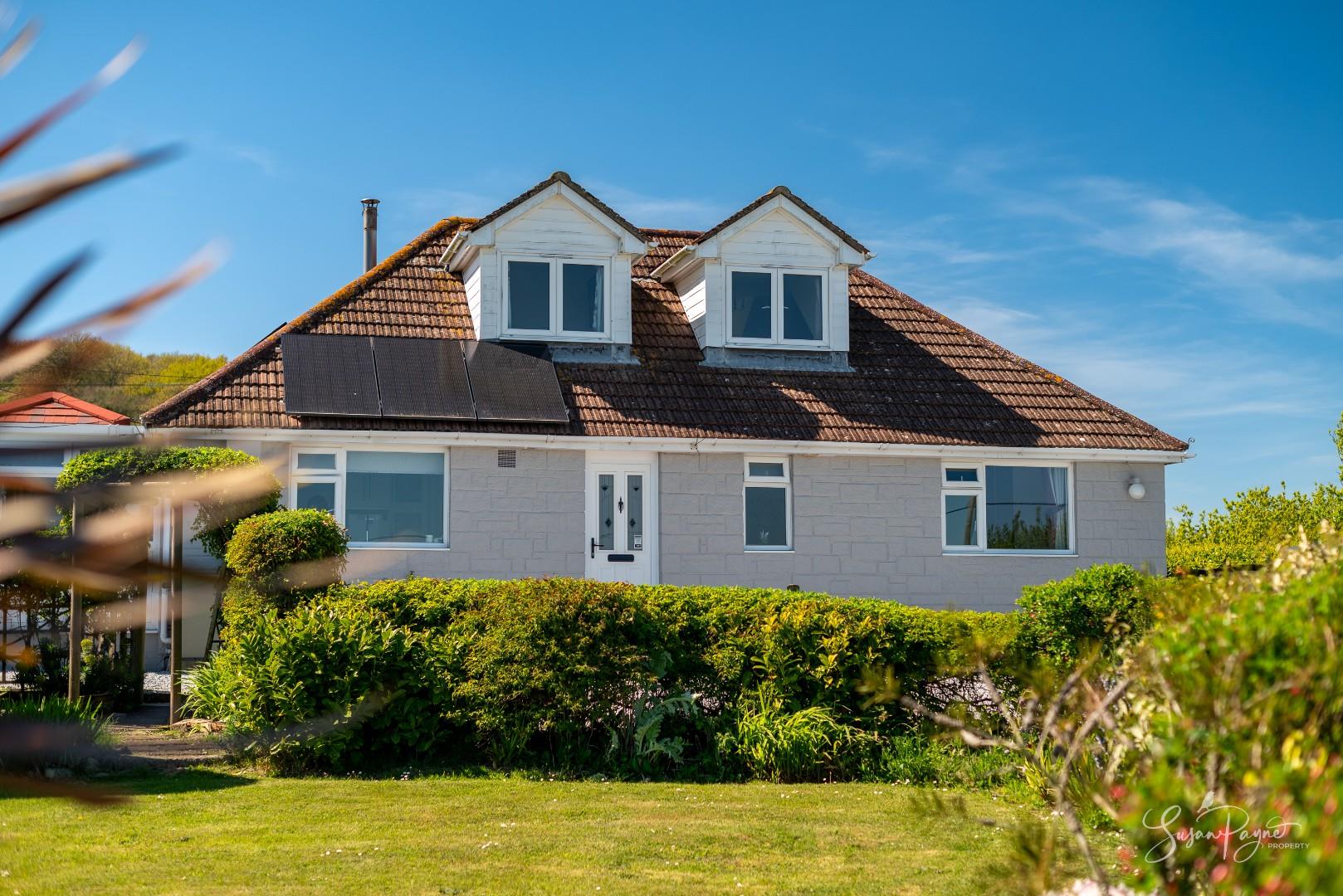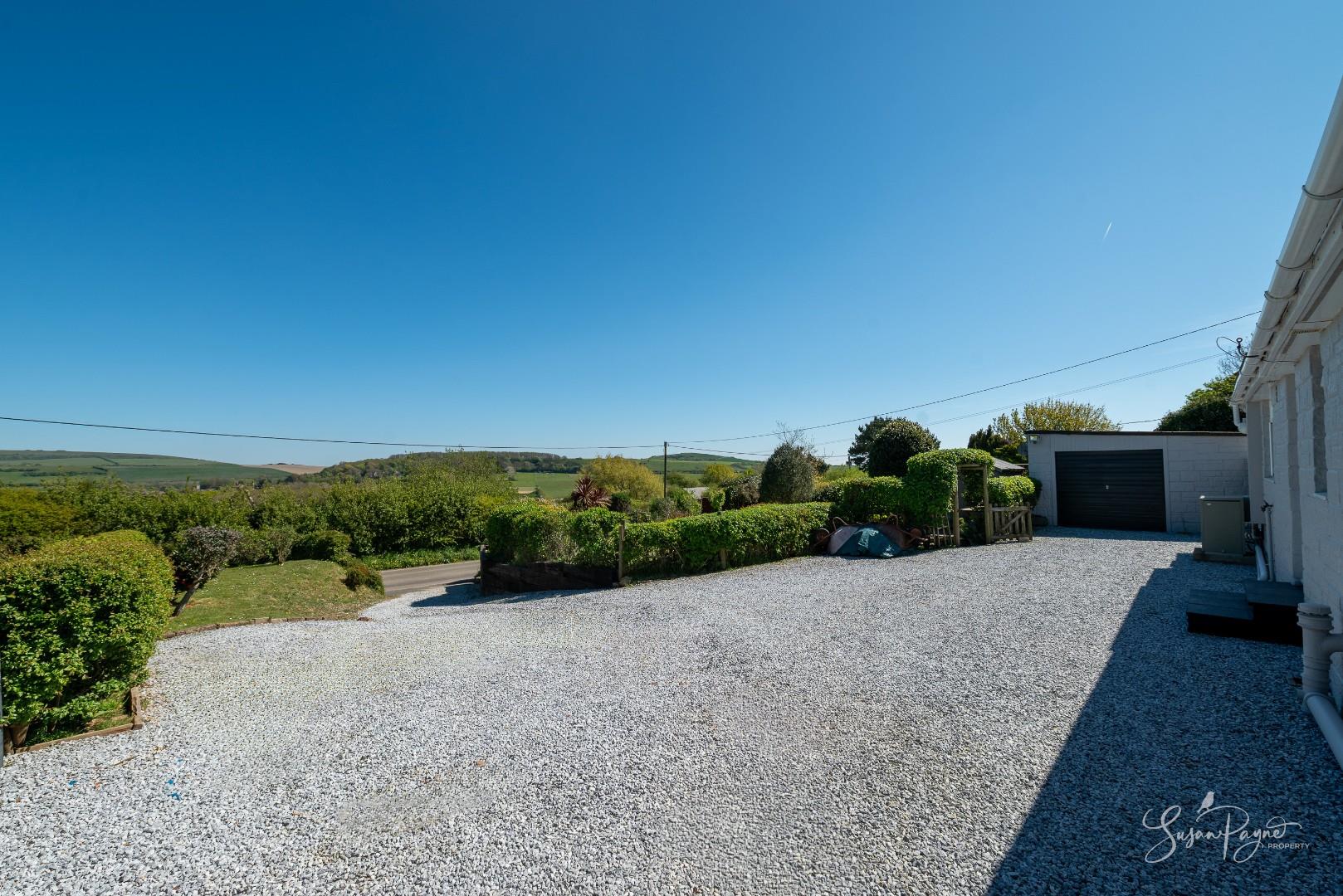 Approached via a driveway providing off-road parking, Hillcroft sits comfortably within its plot, framed by established planting and open views to the front. The entrance leads into a welcoming porch and hallway, immediately setting the tone for the light and space found throughout the home.