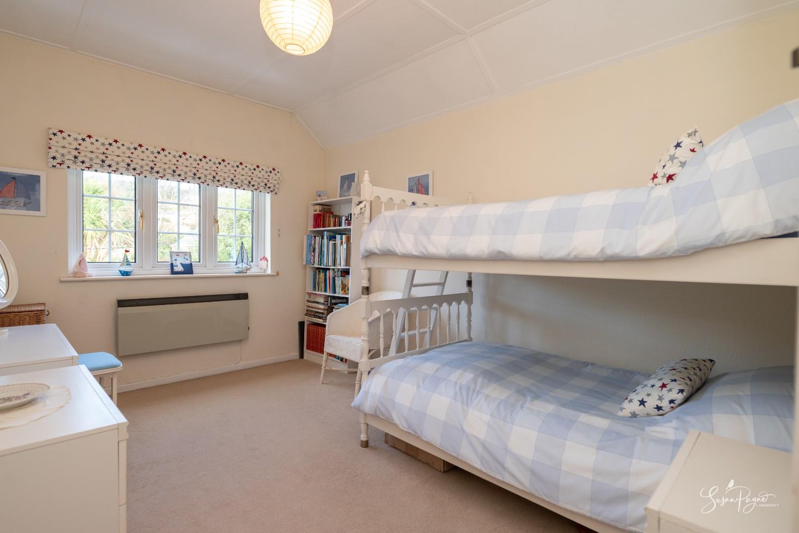 The smallest of the four bedrooms offers a window to the side aspect with views over the garden and glimpses of the sea whilst offering a generous single bedroom or an additional study, if required.