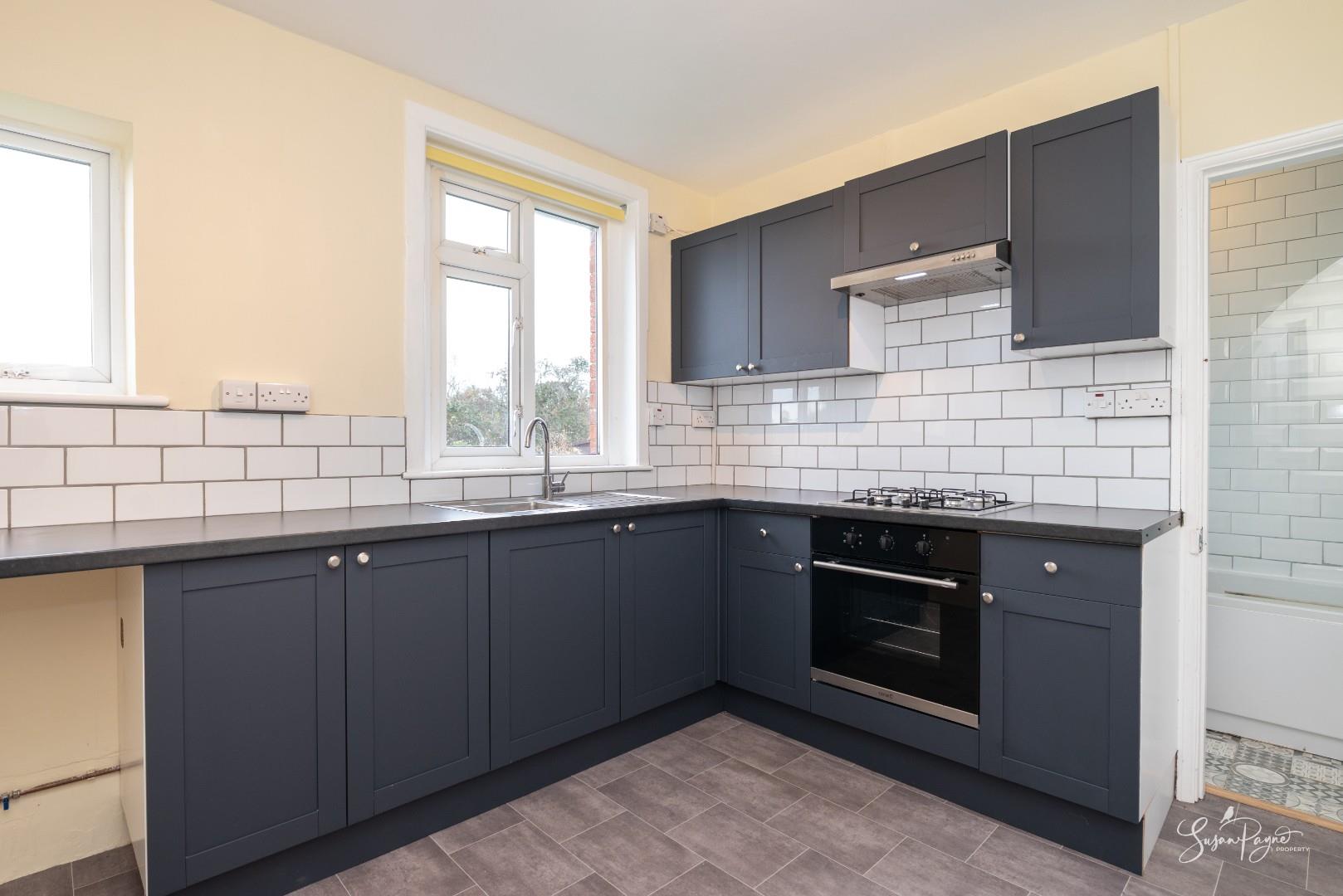 Fitted with modern kitchen units offering plenty of storage, the kitchen benefits from two windows to the rear aspect with views over the garden and offers integrated appliances, including an electric oven and gas hob with an extractor fan over. There is also under-counter space and plumbing for a washing machine, plus space for a breakfast table within the room.