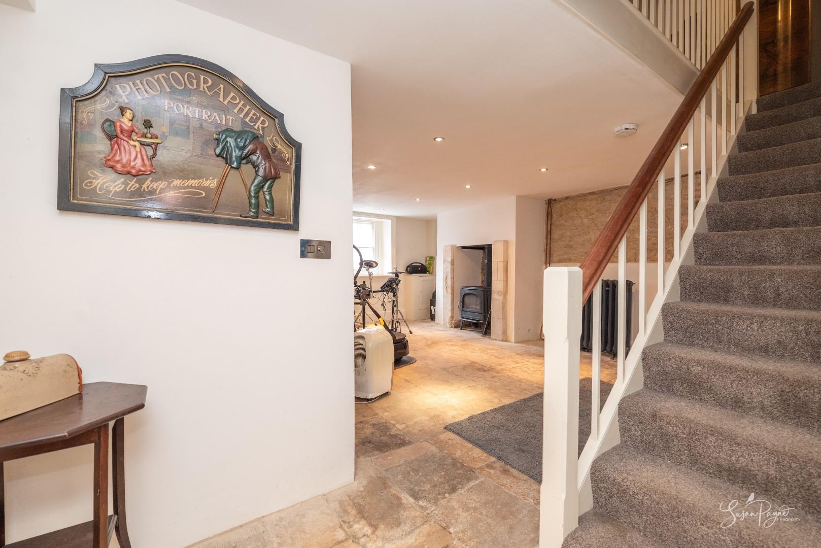 Finished with stunning flagstone floors, which continue through most of the basement, this space is currently utilised as a gym and has been used as a games room in previous years. With access to a storage cupboard, the space provides access to the utility room and bathroom and also features a wonderful log-burning stove to keep the space cosy.