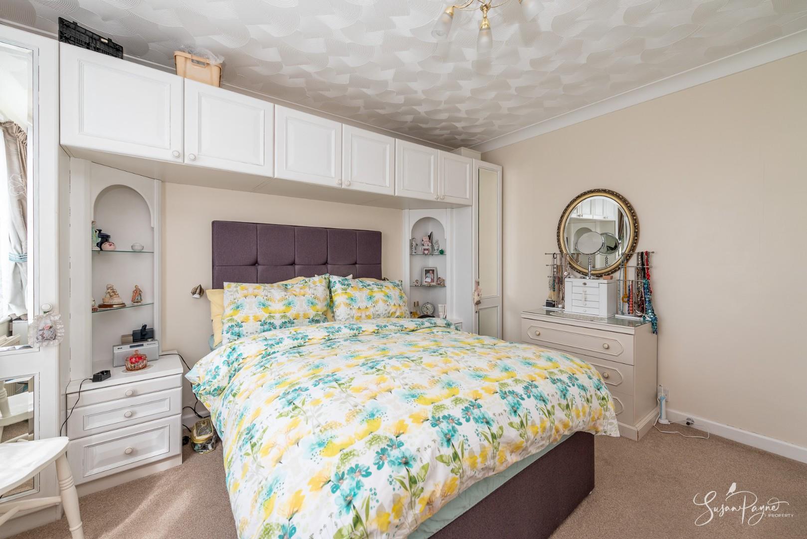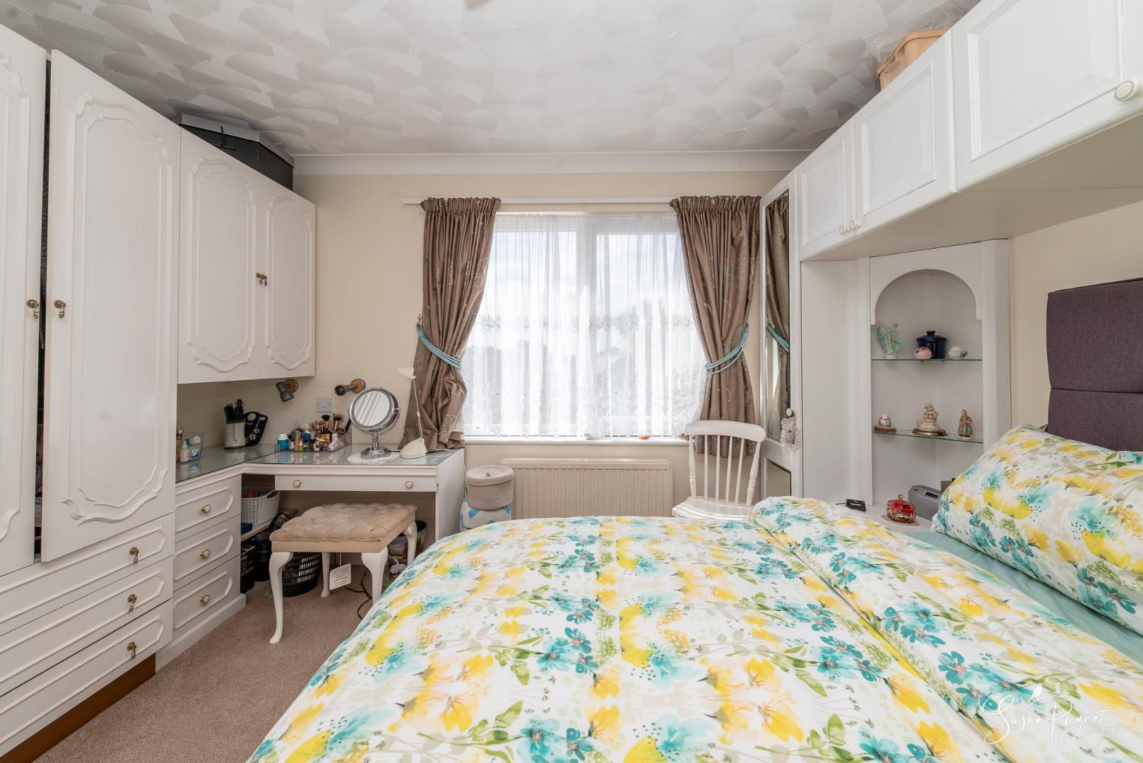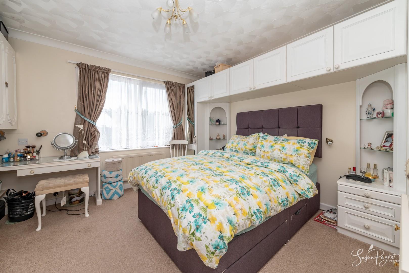 A spacious principal bedroom with a large window to the front aspect offering plenty of natural light. The room is neutrally decorated and benefits from a full suite of fitted bedroom furniture.