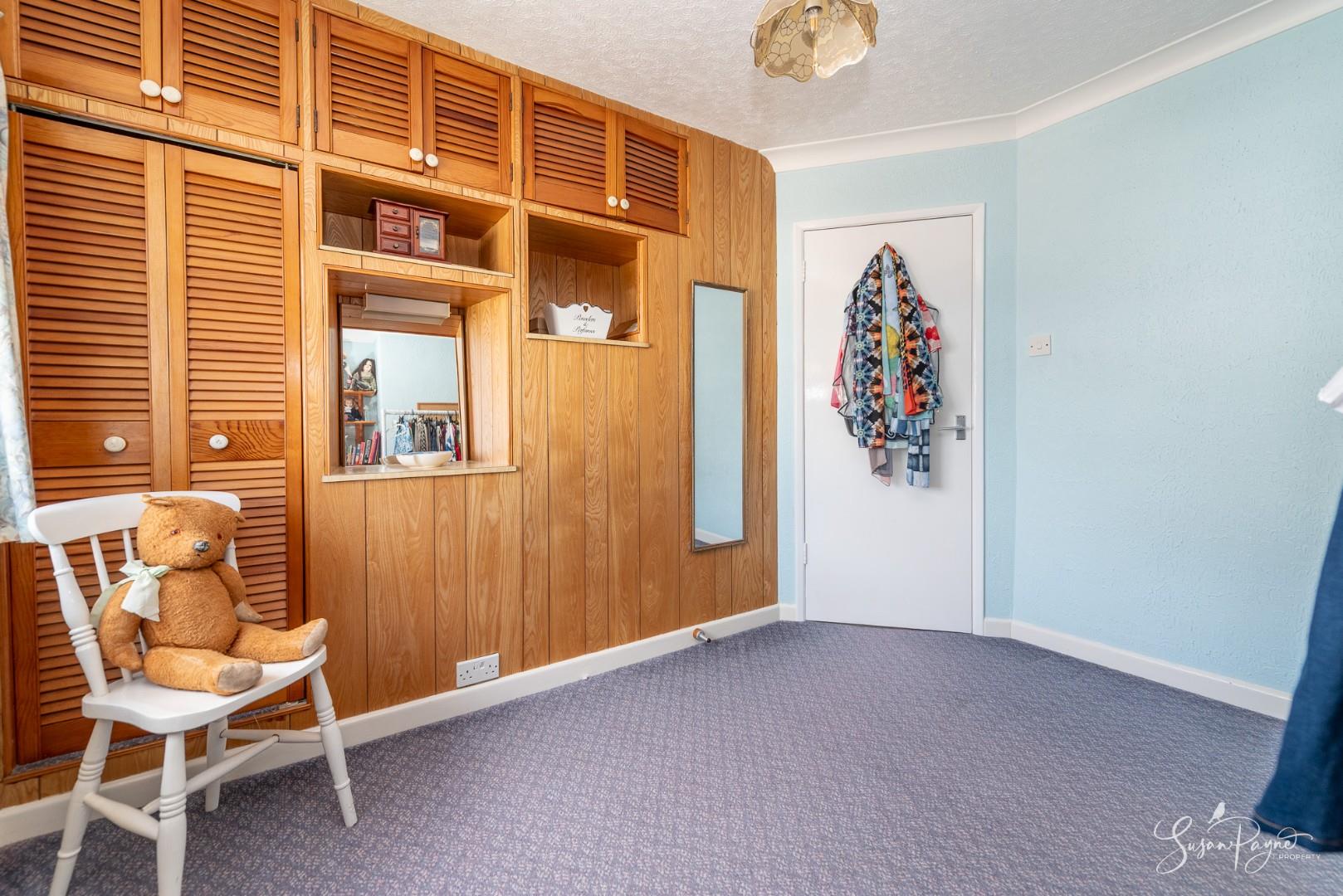 Currently used as a study or occasional guest room, this third double bedroom enjoys a pleasant outlook to the front aspect, is neutrally decorated and features built-in over-stairs storage cupboards.