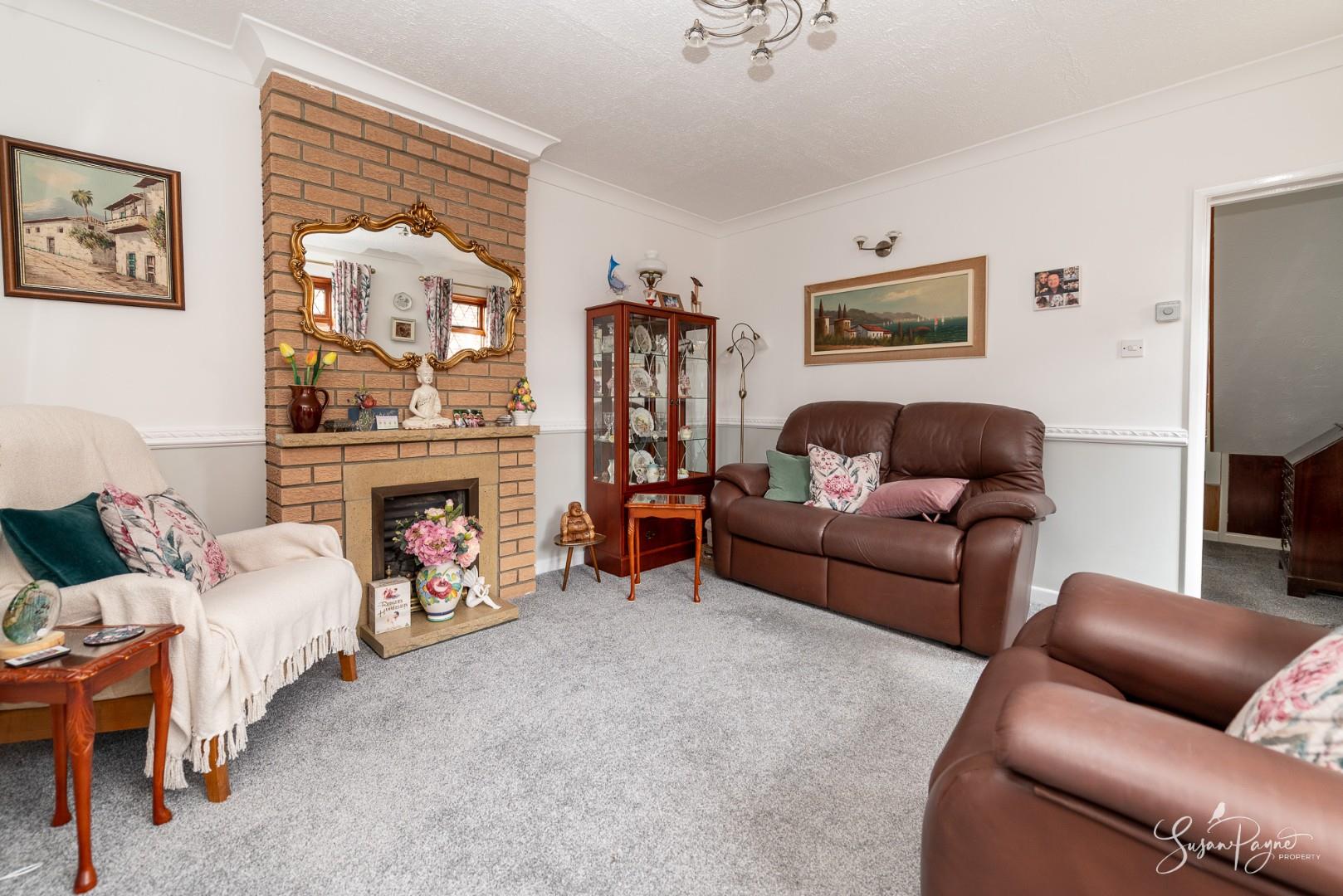 A beautifully presented reception space with a picture window to the side aspect and elegant neutral décor. The room is arranged around a characterful brick fireplace, and has a door to the dining room which adds to the flow of this home.