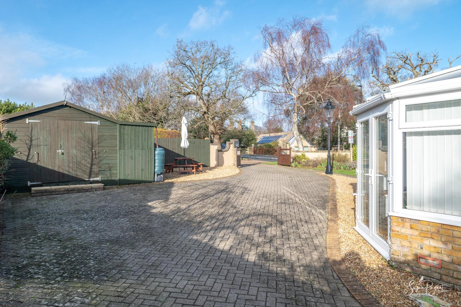 To the front, a gated block-paved driveway provides excellent off-road parking for multiple vehicles, as well as providing storage with a large shed. The driveway has the potential to be extended, if required.