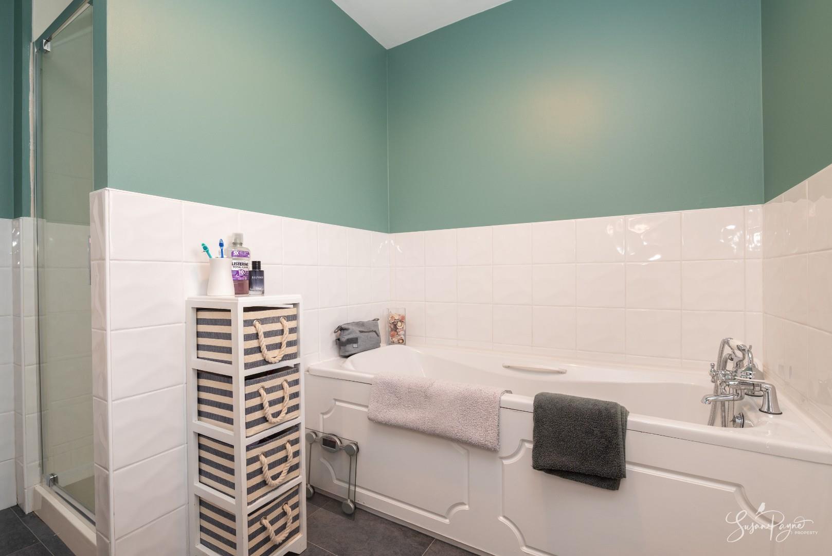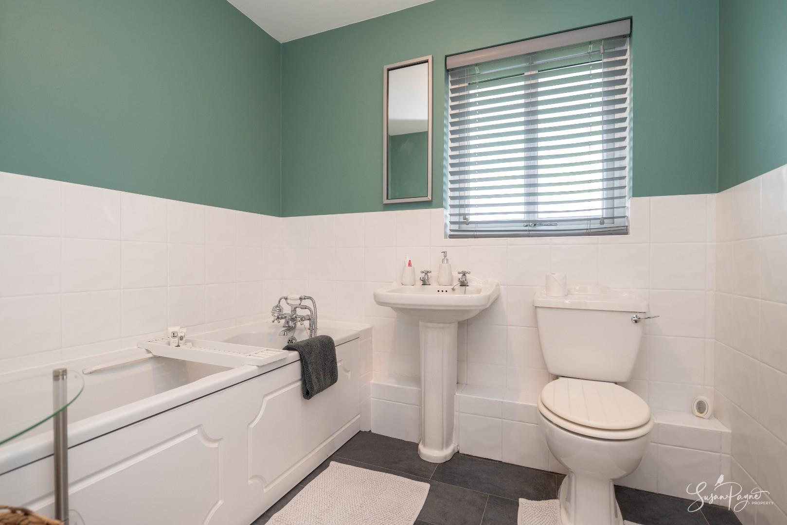 Fully equipped with a bath, a separate shower, a WC, and a hand basin, this en-suite features a window to the front aspect and also offers potential for the new owners to put their stamp on.