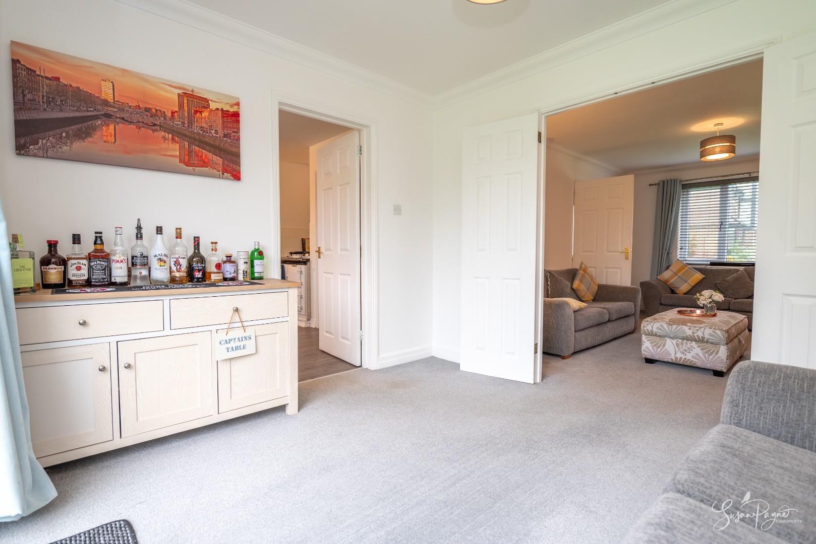Enjoying ample space for the whole family, the room enjoys a wonderful gas feature fire which creates a cosy atmosphere, particularly during the cooler, winter months. Benefitting from dual aspect windows to the front and side, the space also opens into the dining room with large doors, offering the new owners an extension to the living room, or could be separated into two rooms to keep it cosy.