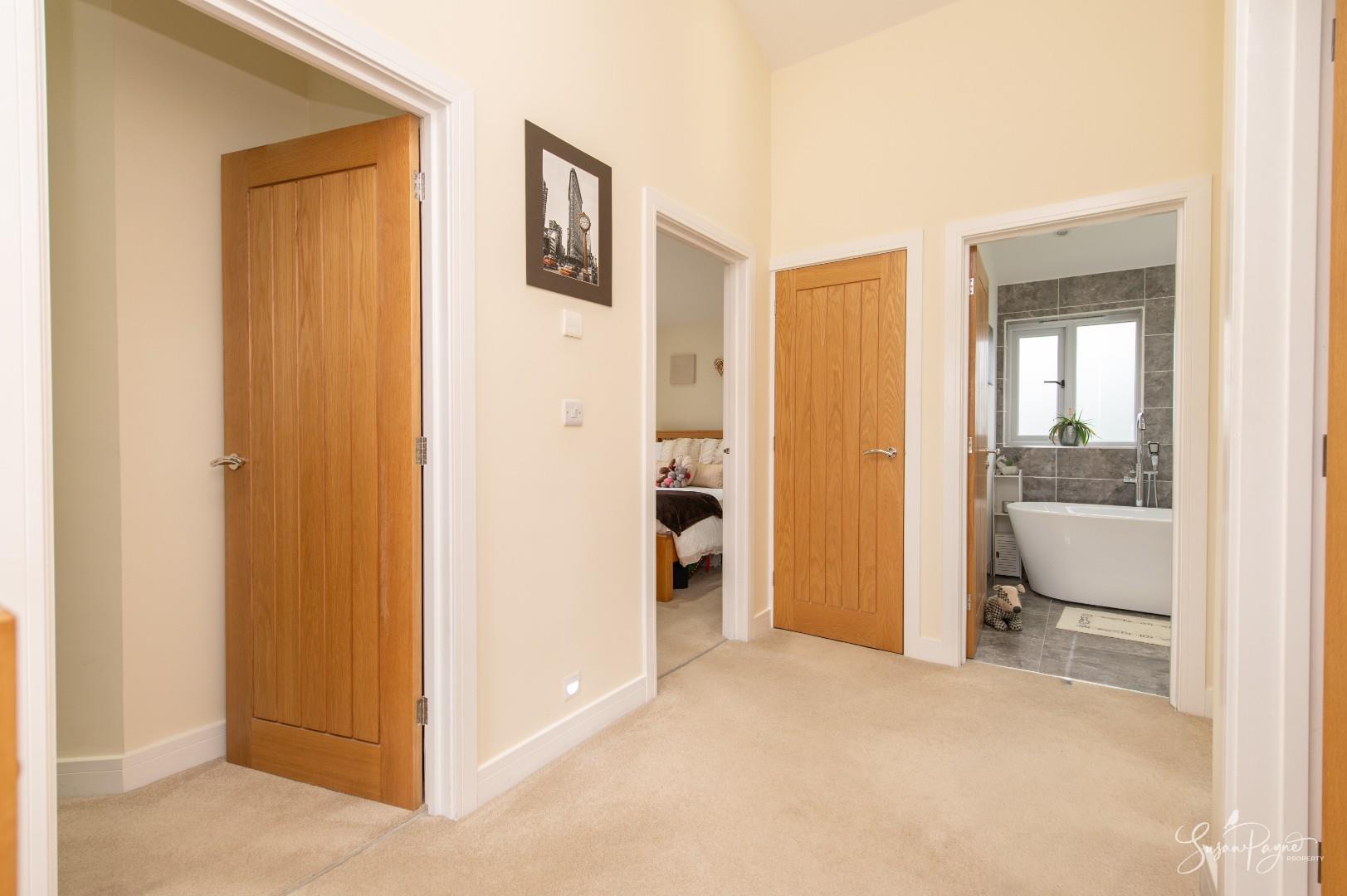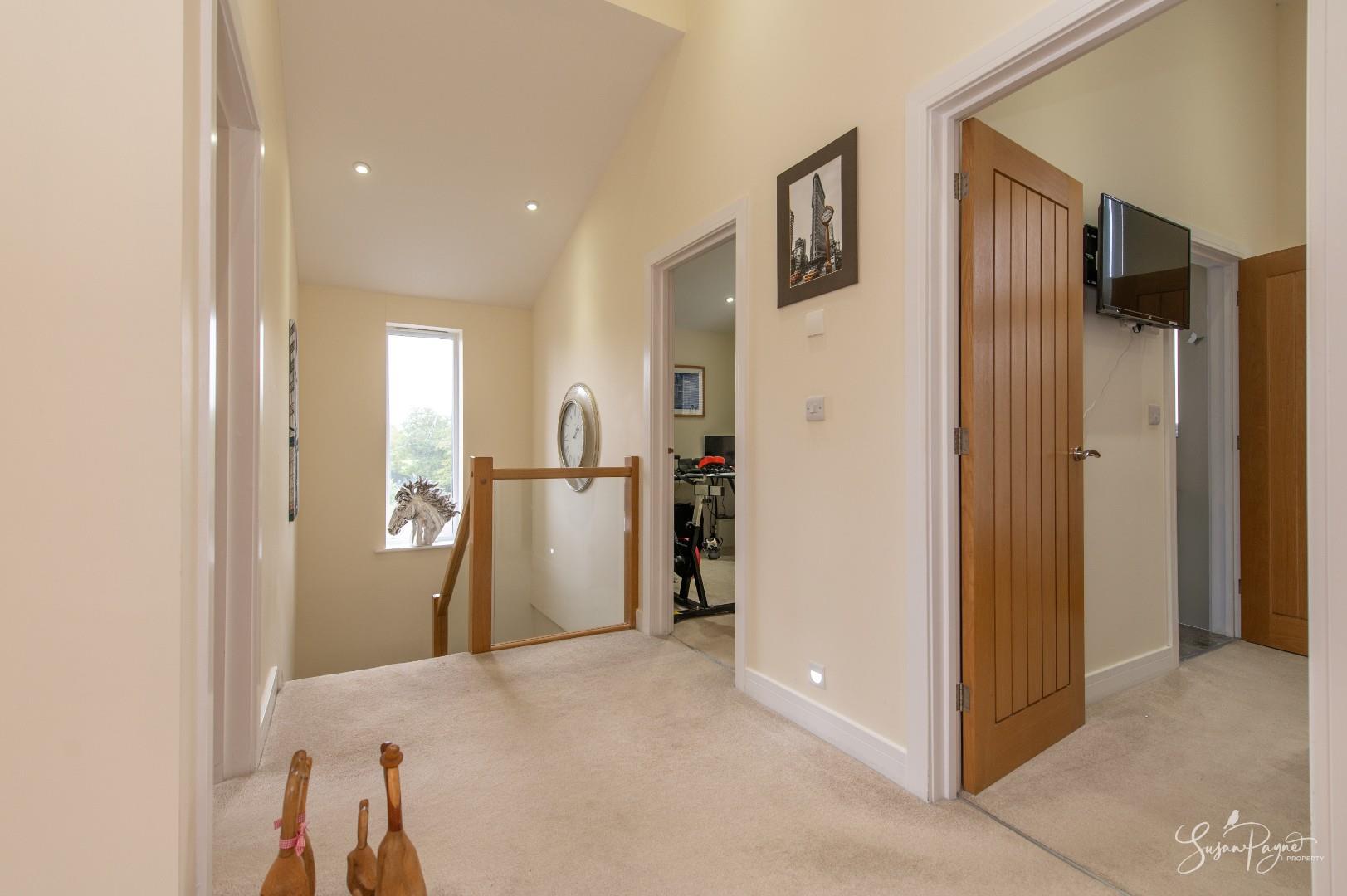 Boasting beautiful, vaulted ceilings throughout the first floor, this spacious landing boasts natural light from a large window over the stairwell, plus there is access to the first-floor accommodation, including a large airing cupboard containing the underfloor heating elements for the first floor.