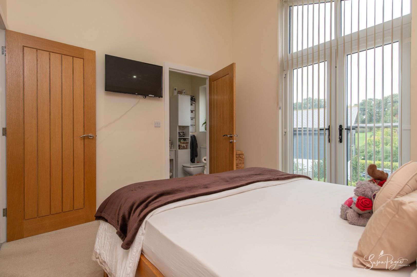 Naturally lit from the French doors to a Juliet balcony, this stunning double bedroom benefits from a fitted cupboard and there is access to an en-suite shower room.