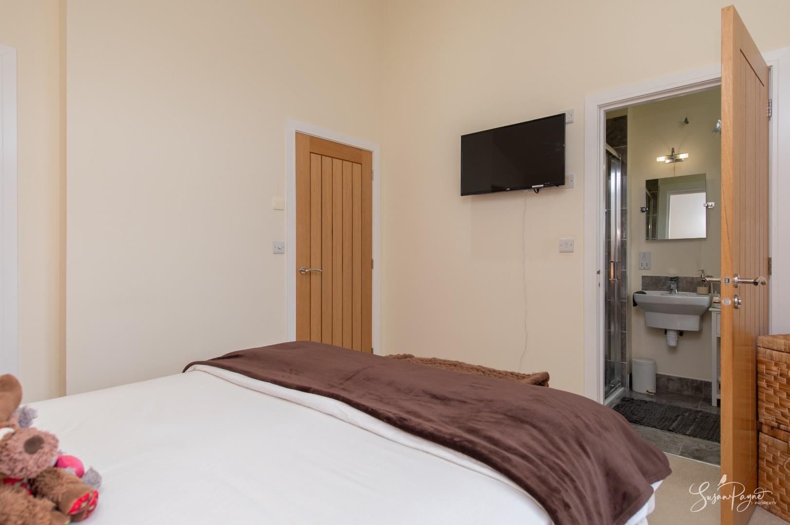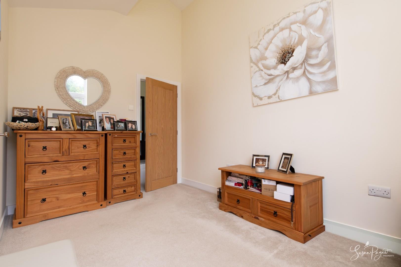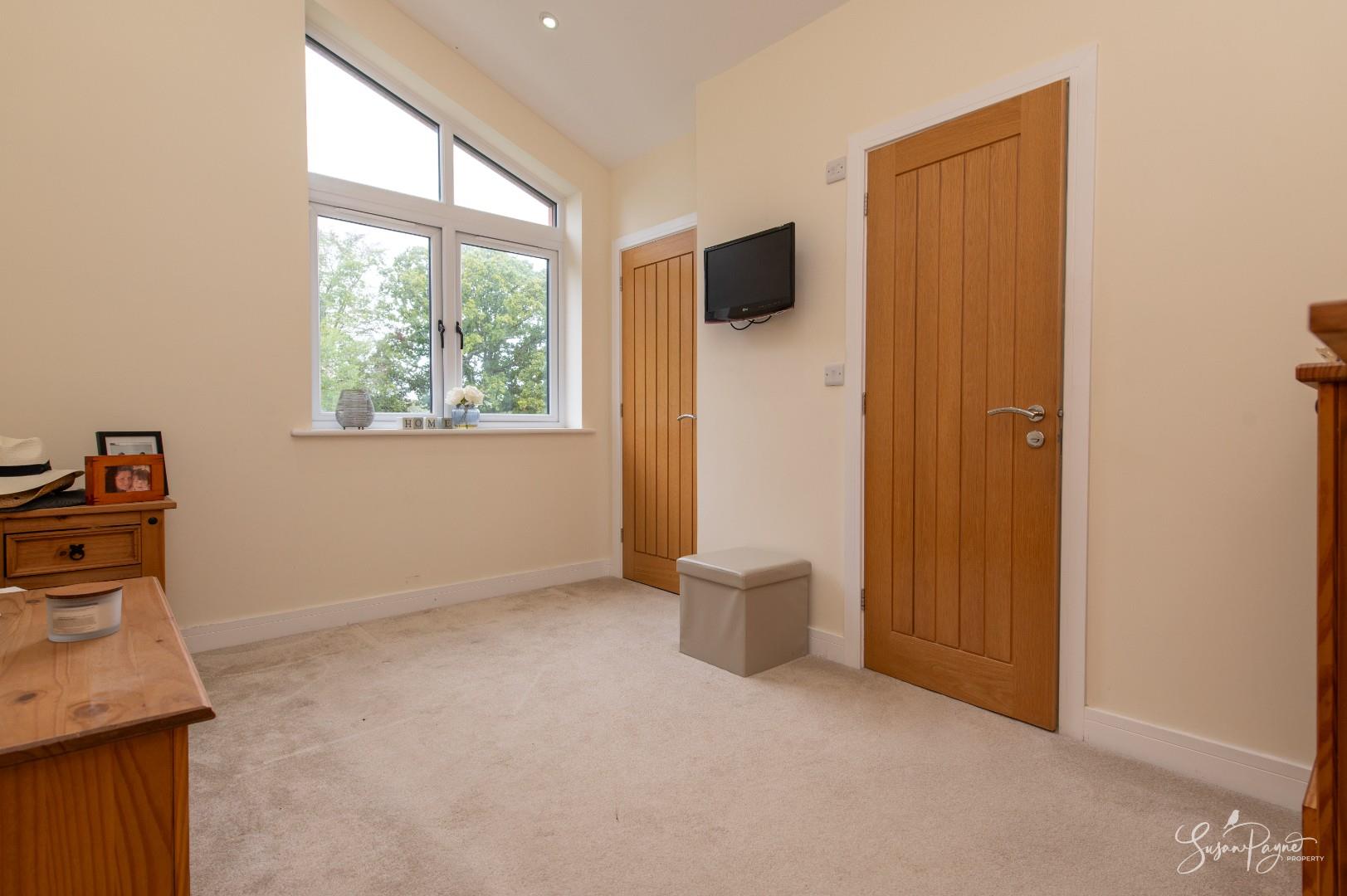 Currently utilised as a dressing room, this fantastic double bedroom enjoys natural light from the window to the rear aspect with wonderful views over the rear garden and countryside beyond. There is a large storage cupboard and access to an en-suite shower room.