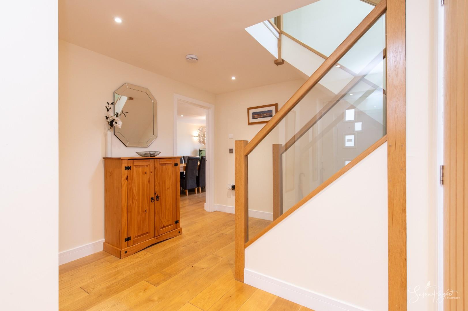 Entering through the composite front door, this wonderful entrance hall boasts wooden flooring which continues through the ground floor, and offers access to the airing cupboard which contains the gas boiler, water tank and underfloor heating elements. There is also a large understairs cupboard located here, ideal for storage.