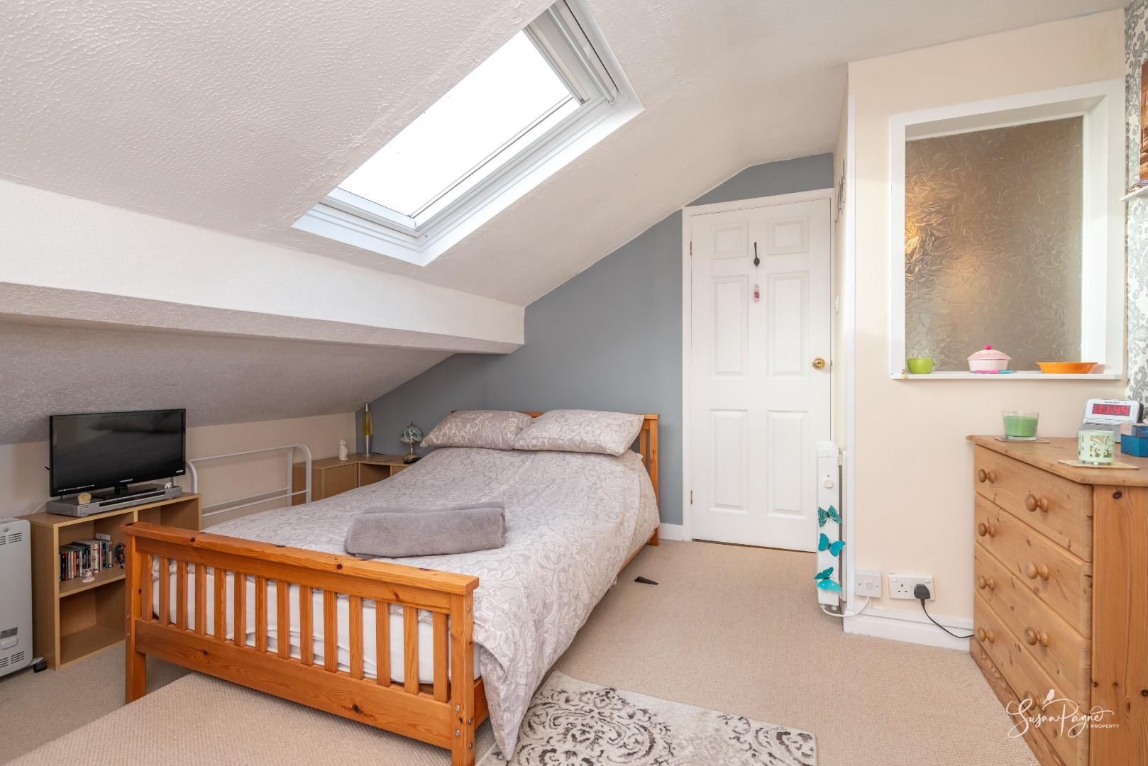 With a window to the side and a Velux window, this lovely double bedroom offers ample space for bedroom furniture, with added storage space.