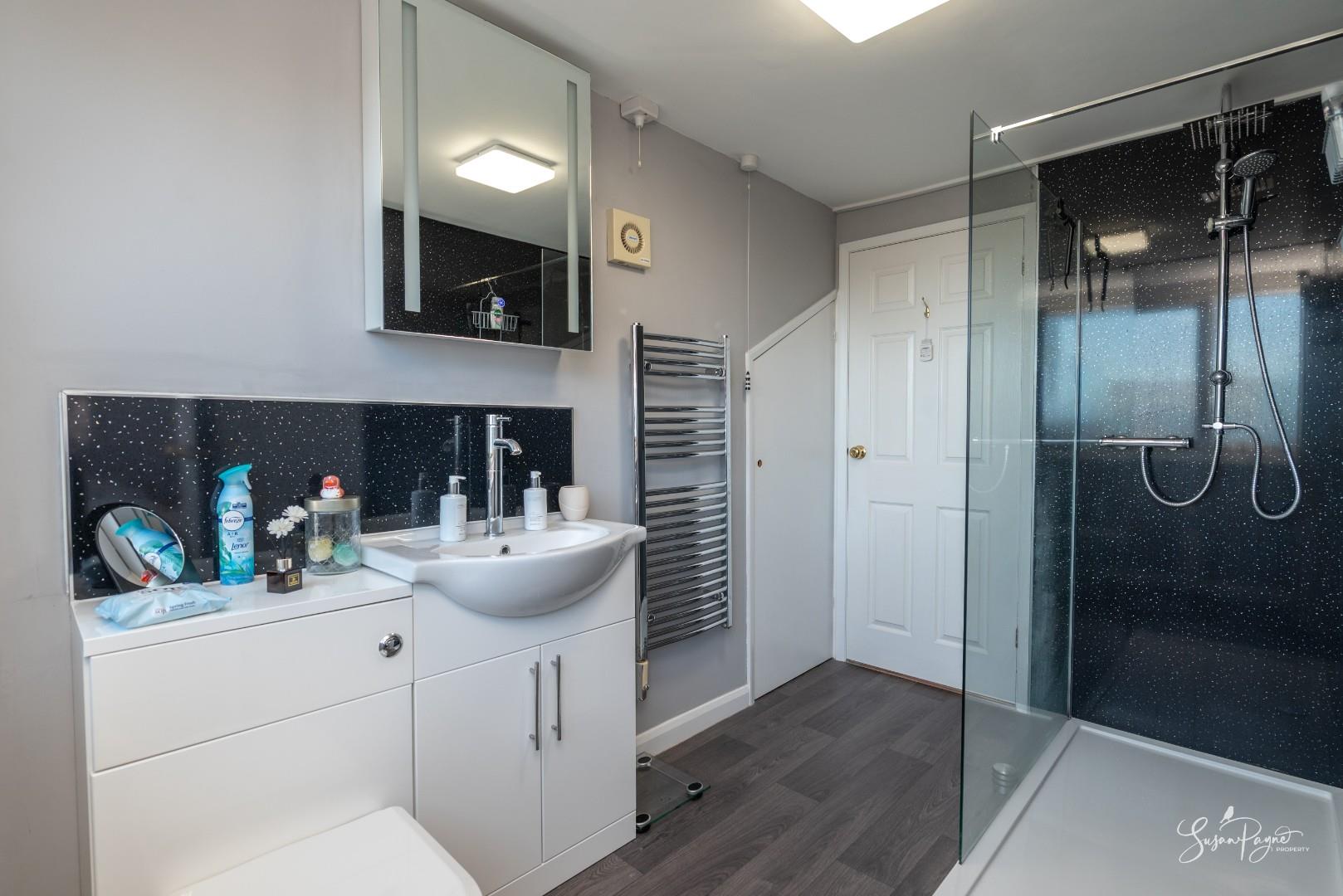 Lovingly maintained and updated over the 22 years of ownership, this fabulous chalet bungalow offers spacious and naturally light accommodation throughout, with flexible accommodation comprising an entrance hall leading to the kitchen-breakfast room, living room, ground floor shower room, bedroom one and bedroom four/study, and the conservatory. The stairwell from the entrance hall leads up to the first-floor landing, which provides access to two bedrooms and the Jack-and-Jill bathroom. The garden is low-maintenance and enjoys sunshine through most of the day, plus it provides access to the workshop and the garage. The front of the property offers a large driveway for multiple vehicles, plus the property benefits from owned solar panels.