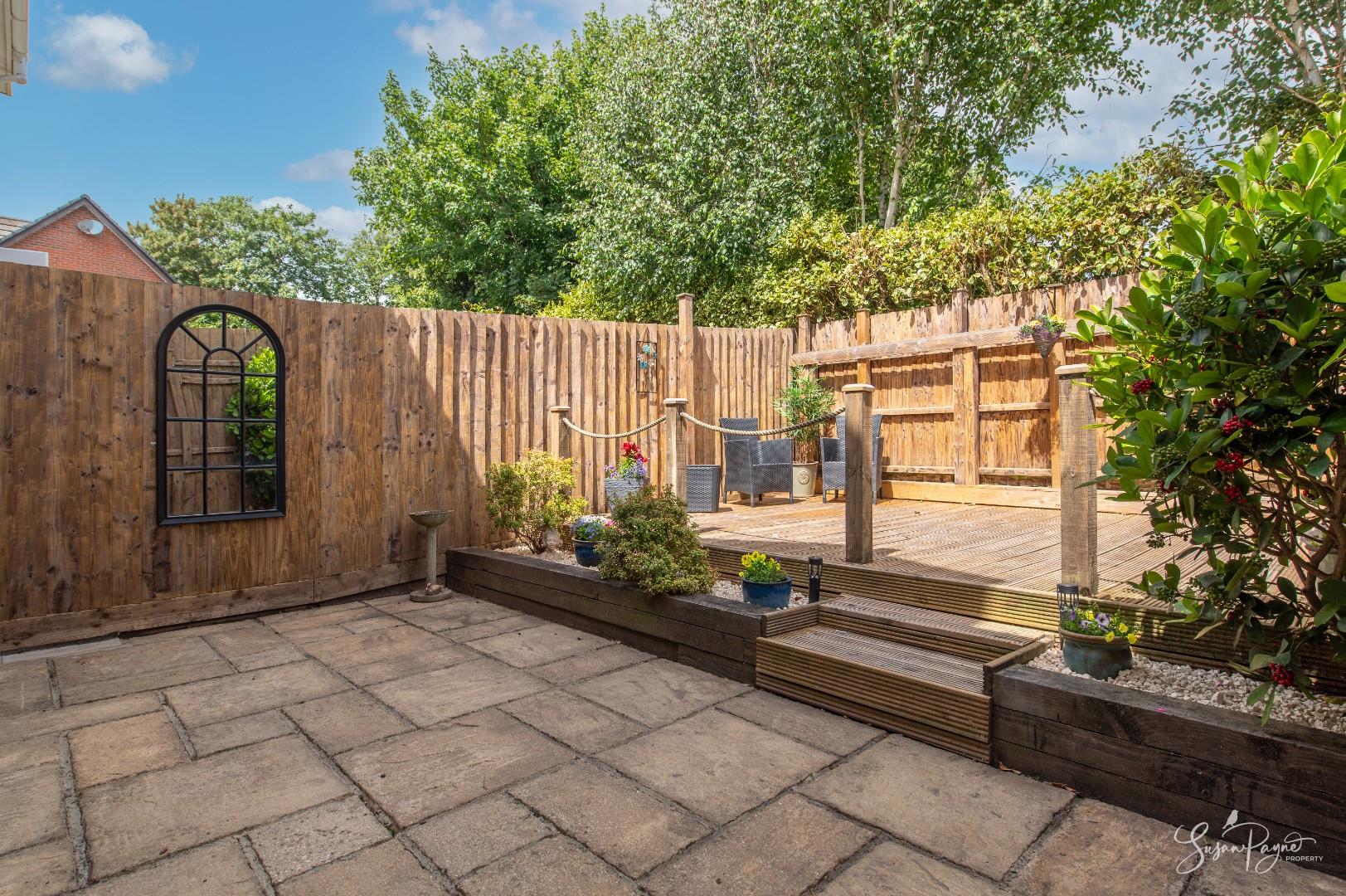 Fully enclosed and benefitting from a low maintenance finish, this garden offers plenty of space to enjoy the sunshine whilst featuring boarders to plant, if desired. The French doors from the living room open directly onto the patio which enjoys the morning sunshine, making it the perfect spot for breakfast. The decking area can be reached by a couple of steps up from the patio and enjoys sunshine for most of the day.