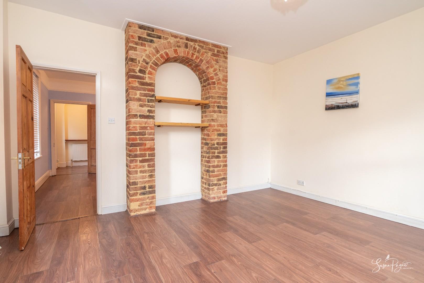 Spacious and featuring two arched windows on the side aspect, this family room continues the flooring and neutral décor and offers a characterful fire as the focal point of the room. A doorway leads into an additional reception room.