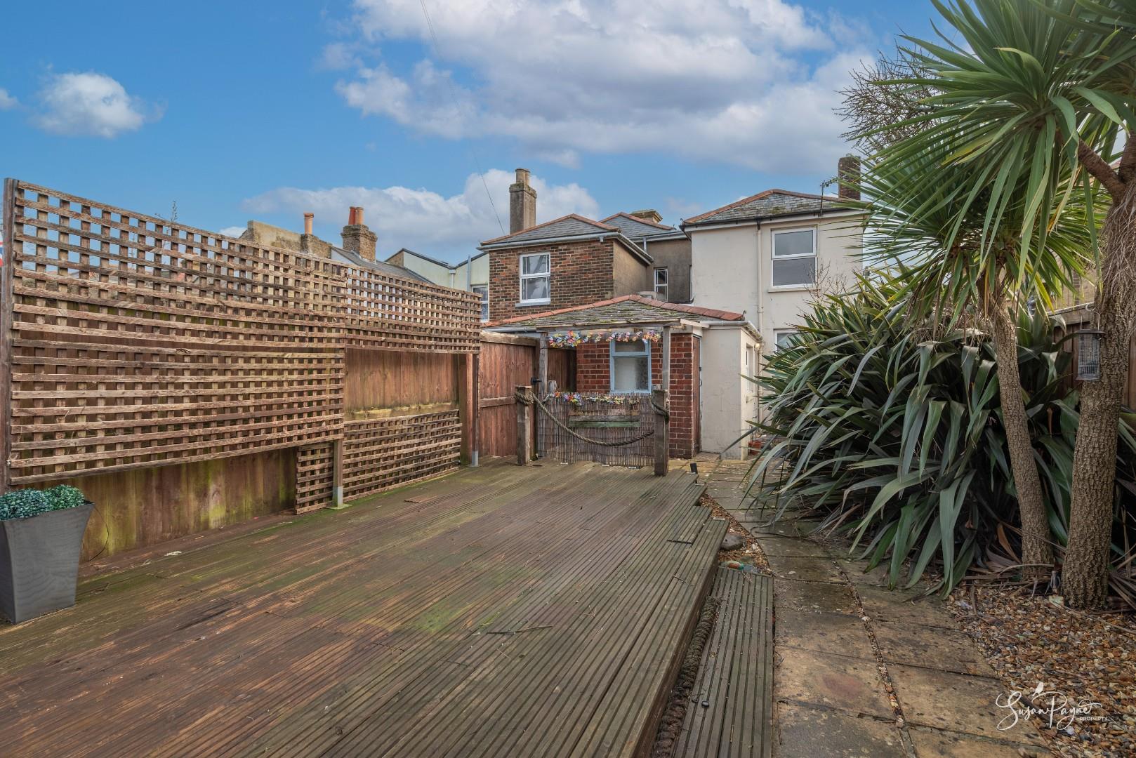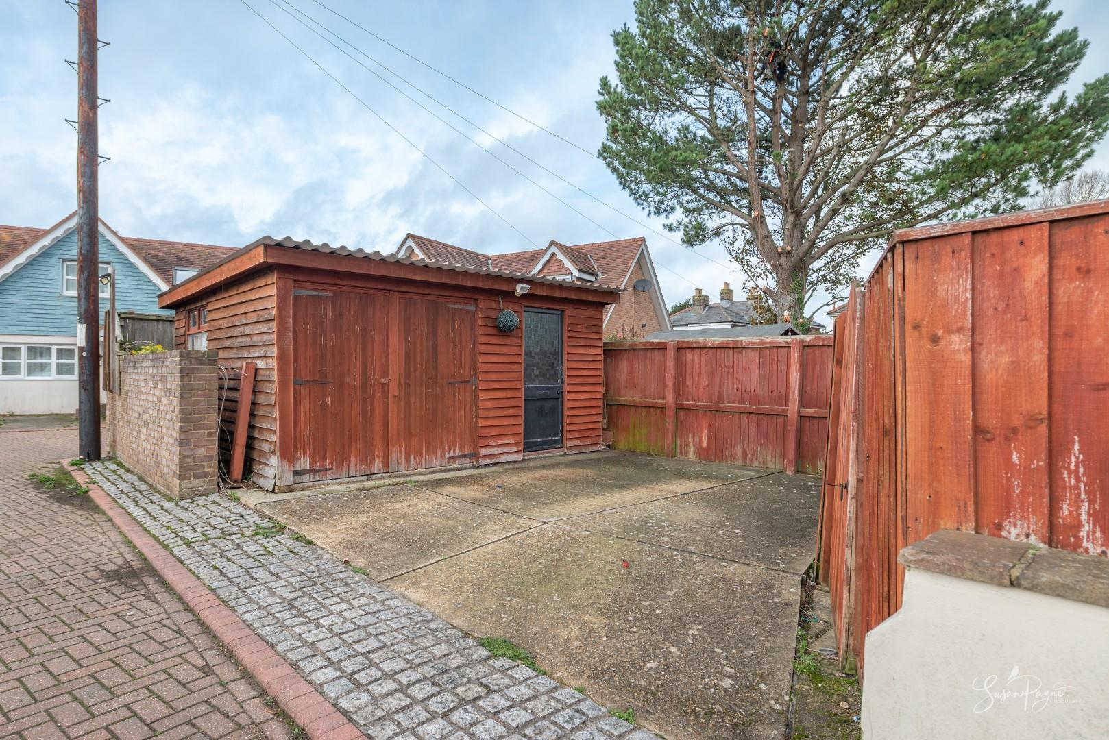 Enjoying sunshine for most of the day, this low maintenance garden is mostly paved and benefits from a large decking area to one side. The garden offers an exciting opportunity for the new owners to relandscape, if desired. A gate leads to the driveway and garage/workshop located to the rear.