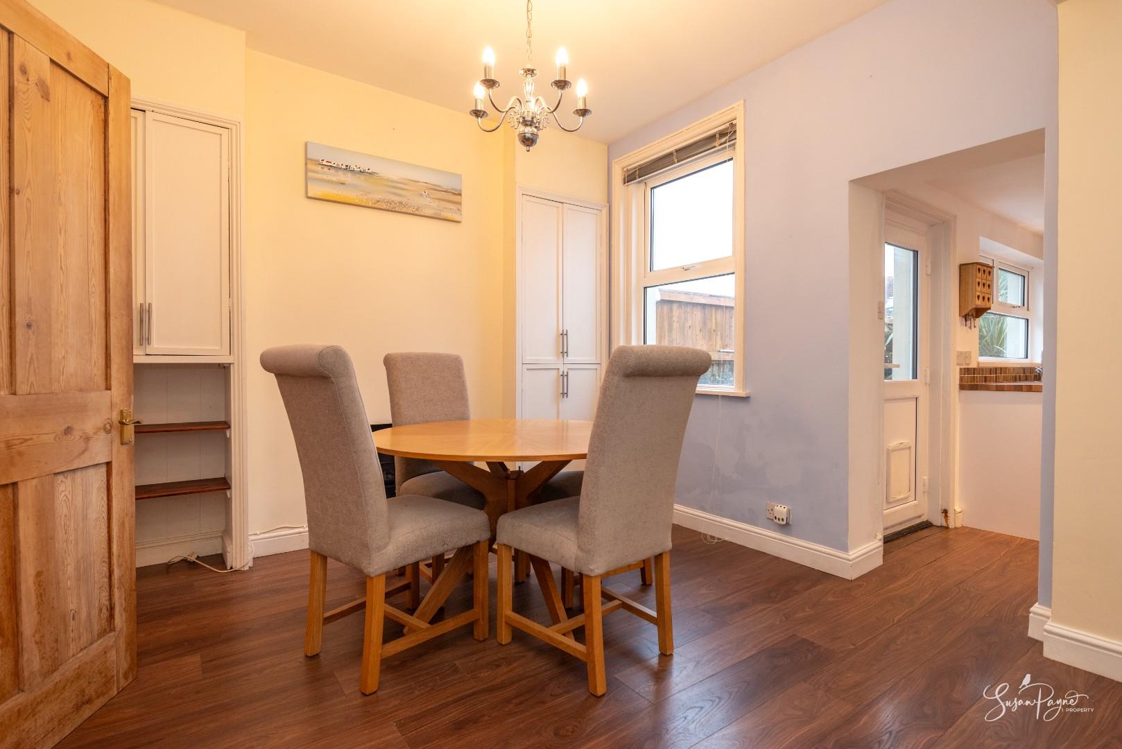 Benefitting from a window to the rear aspect, this spacious dining room offers storage cupboards on either side of the chimney breast, and there is a doorway to the kitchen.