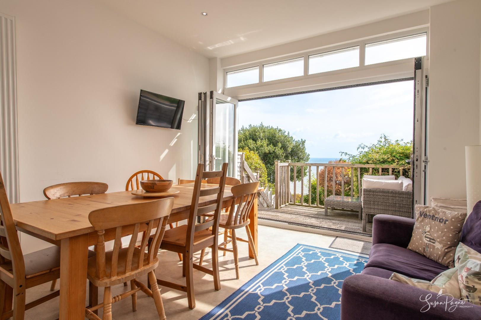 Enjoying a fantastic coastal location in the popular seaside town of Ventnor, this fabulous family home has been a successful holiday let over the years and now offers the new owners the opportunity to undertake a successful holiday let or transform it into a wonderful family home. Offering bright, neutral interiors throughout, the property comprises an entrance hall leading to the snug/ground floor bedroom, and into the open plan kitchen–diner which offers access out to the delightful garden. The stairwell from the entrance hall leads up to the first floor landing, which leads to a double bedroom, a bathroom, and the living room/bedroom that opens onto a wonderful balcony terrace. The second stairwell from the first-floor landing leads up to the second floor, which leads to two further double bedrooms and a shower room. The accommodation is beautifully spaced over three floors and enjoys the most amazing sea views to the rear of the property. Accessed from the kitchen-diner, the garden with multiple seating areas is ideal for soaking in the surroundings and sea sounds, which is just a stone’s throw away, plus offers a wonderful spot for outdoor dining.