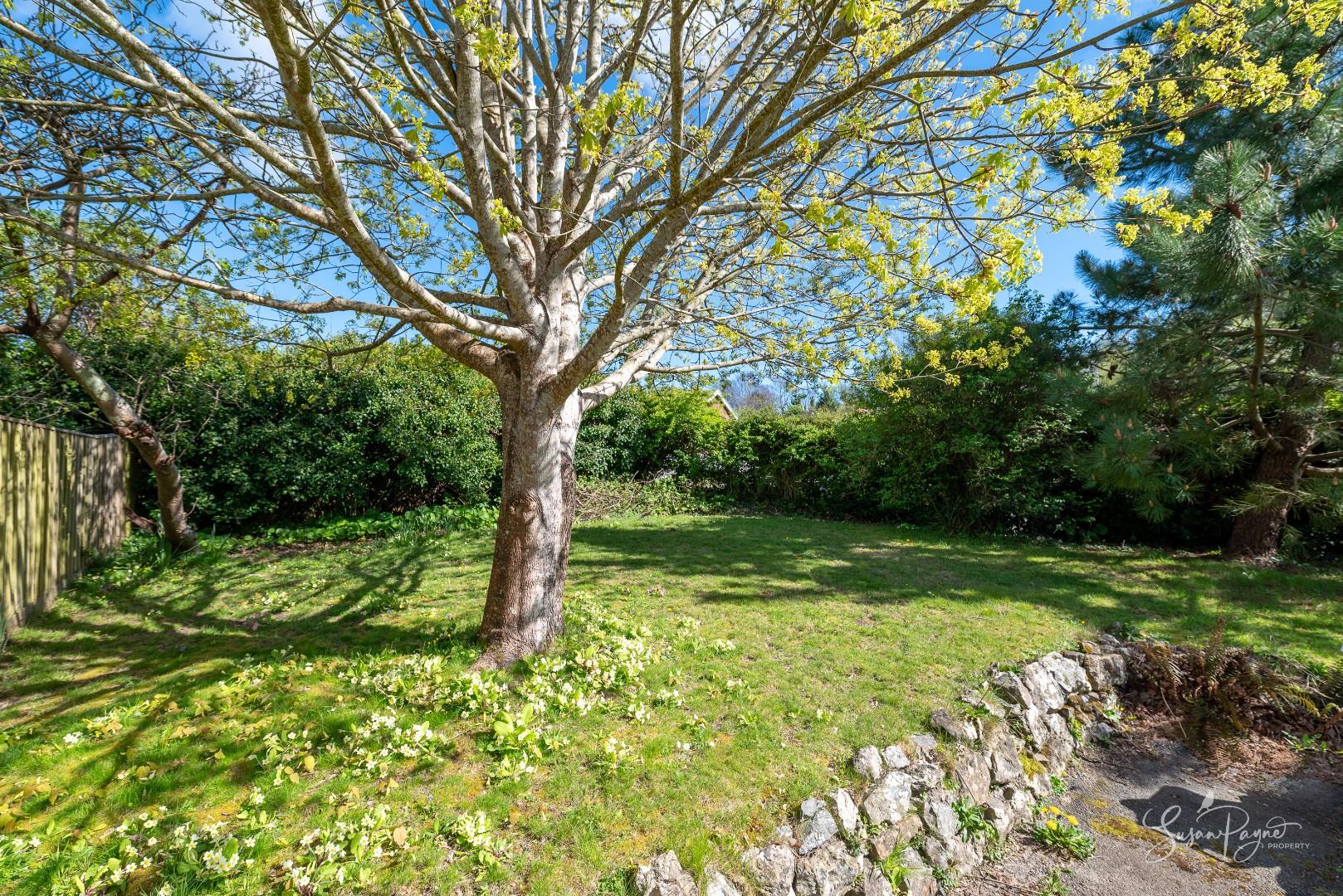 Mostly laid to lawn, this sunny garden is fully enclosed and benefits from a paved area which is ideal for dining al fresco style plus there are a few steps up to a grassed area with some trees. This makes the ideal, private spot for holiday guests or multigenerational living.